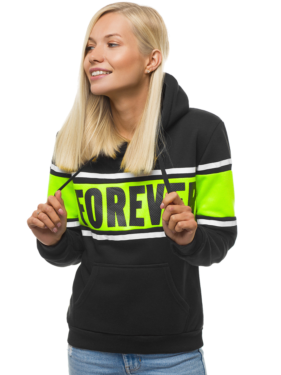 Juodas moteriškas džemperis su gobtuvu OZONEE JS/KSW2004
