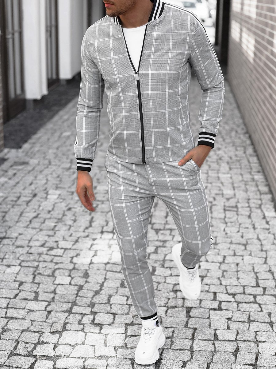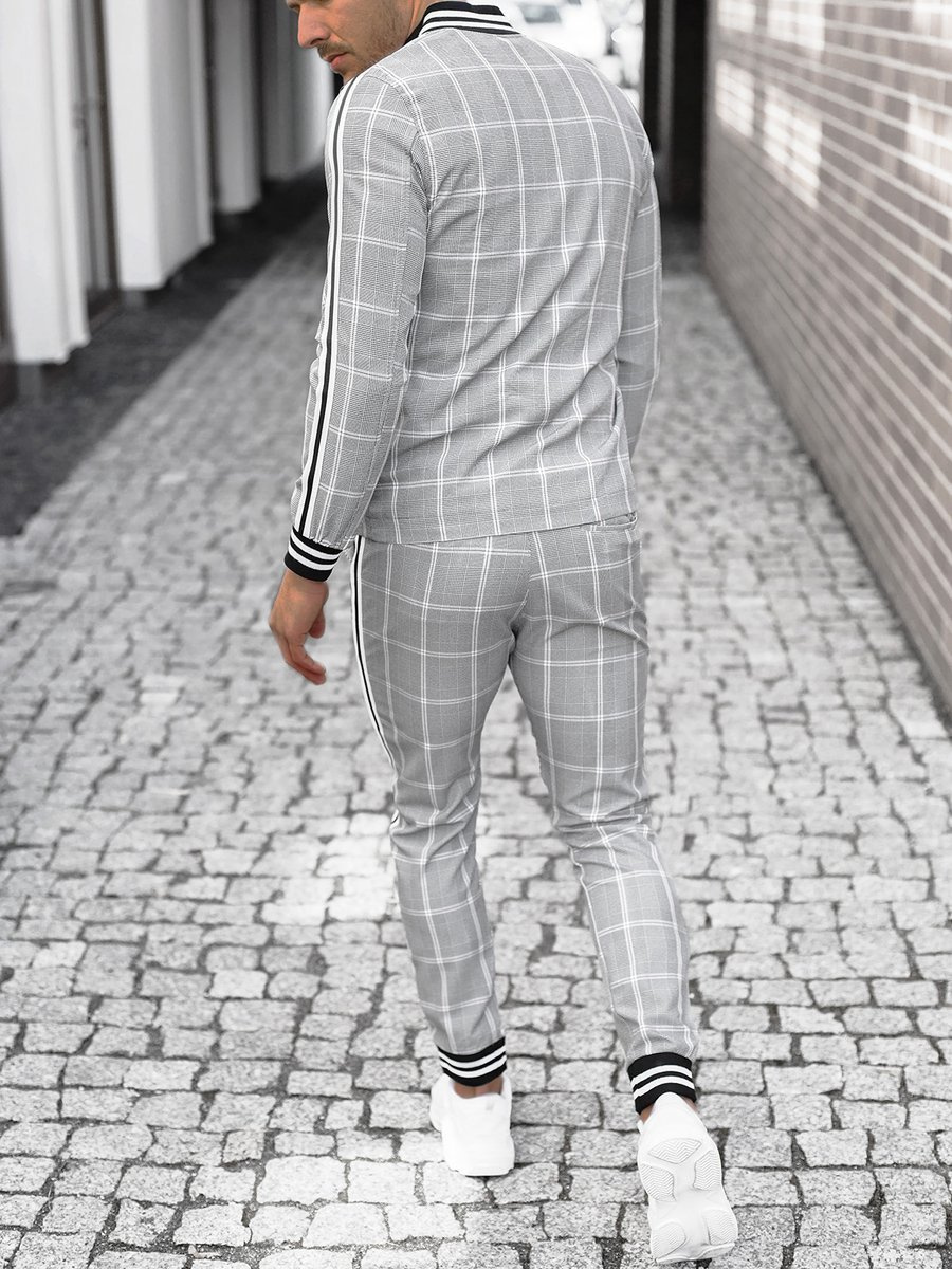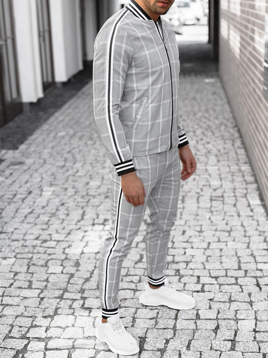 Pilkas vyriškas kostiumas - striukė ir chino kelnės OZONEE DJ/5548