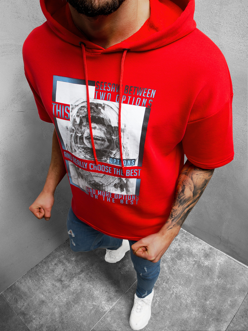 Raudona vyriškas džemperis su gobtuvu OZONEE B/20402010Z