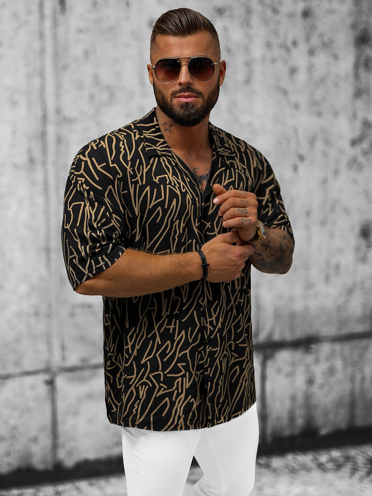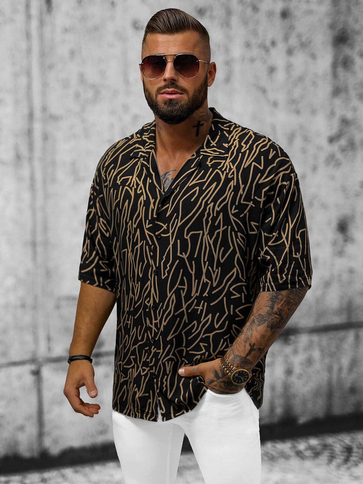 Juodi vyriški marškiniai trumpomis rankovėmis OZONEE O/22202010