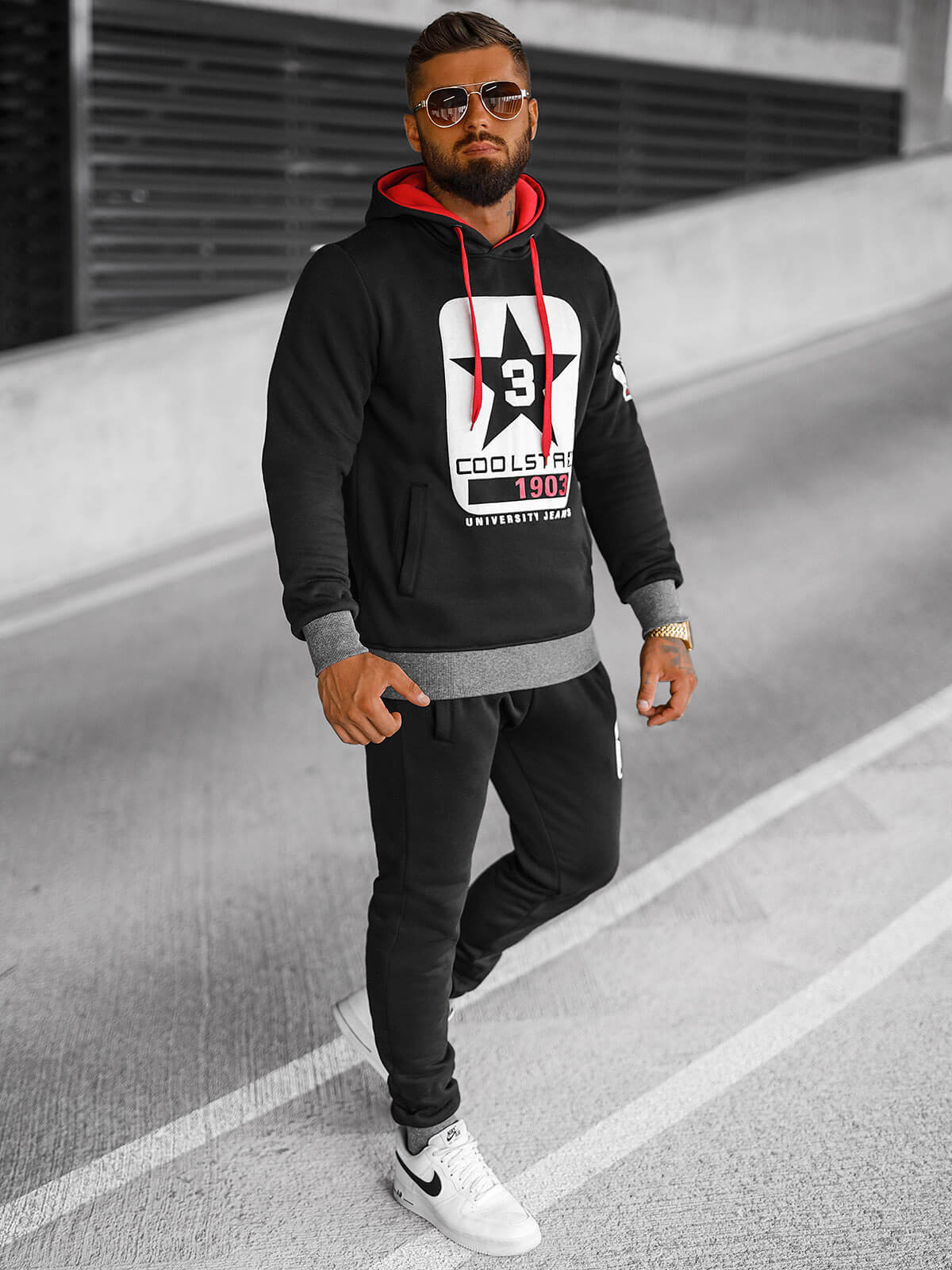 Šis vyriško sportinio kostiumo komplektas yra itin universalus ir tinka daugeliui progų. Jį galite dėvėti treniruodamiesi, eidami pasivaikščioti ar susitikę su draugais. Jis puikiai dera ir prie sportinių batelių, ir prie laisvalaikio sportbačių.