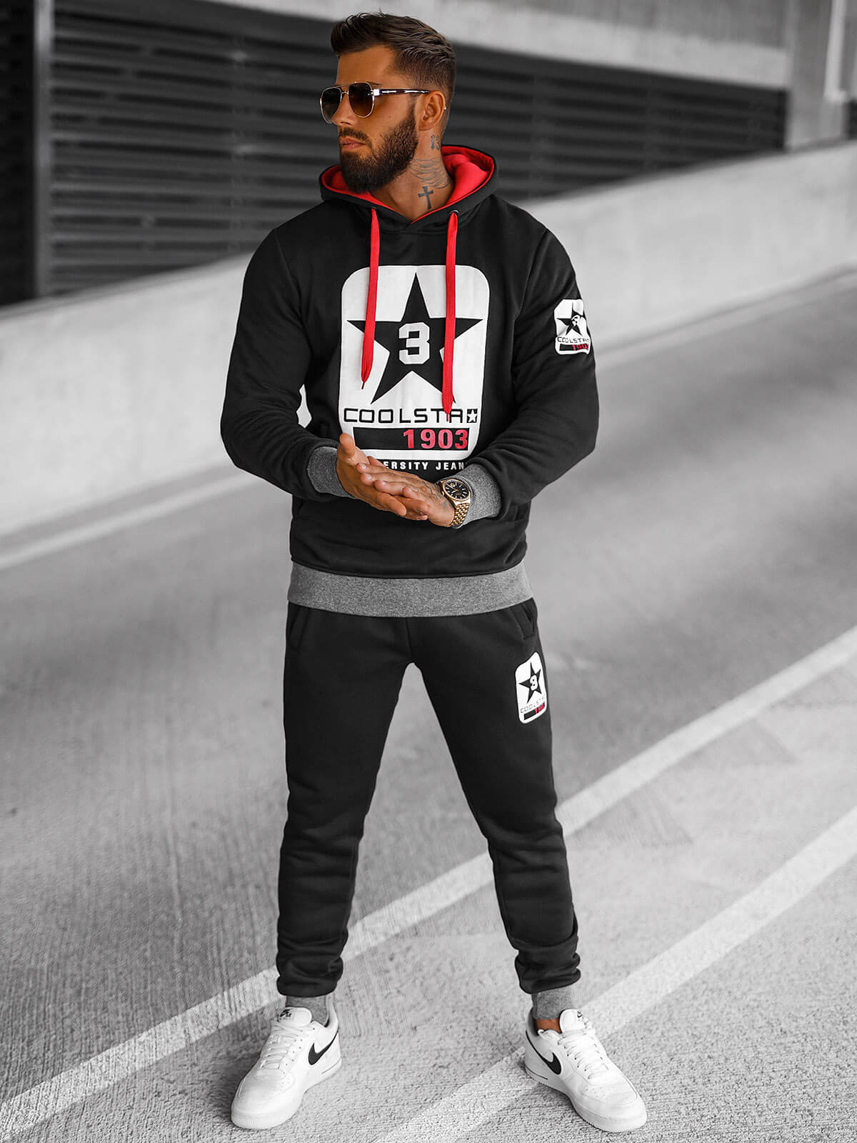 Šis unikalus vyriškas juodas sportinio kostiumo rinkinys OZONEE JS/8C59/3Z - puikus stiliaus ir patogumo derinys. Pagamintas iš aukštos kokybės medžiagaow, jis užtikrina ne tik puikų prigludimą, bet ir ilgaamžiškumą bei patogų dėvėjimą.