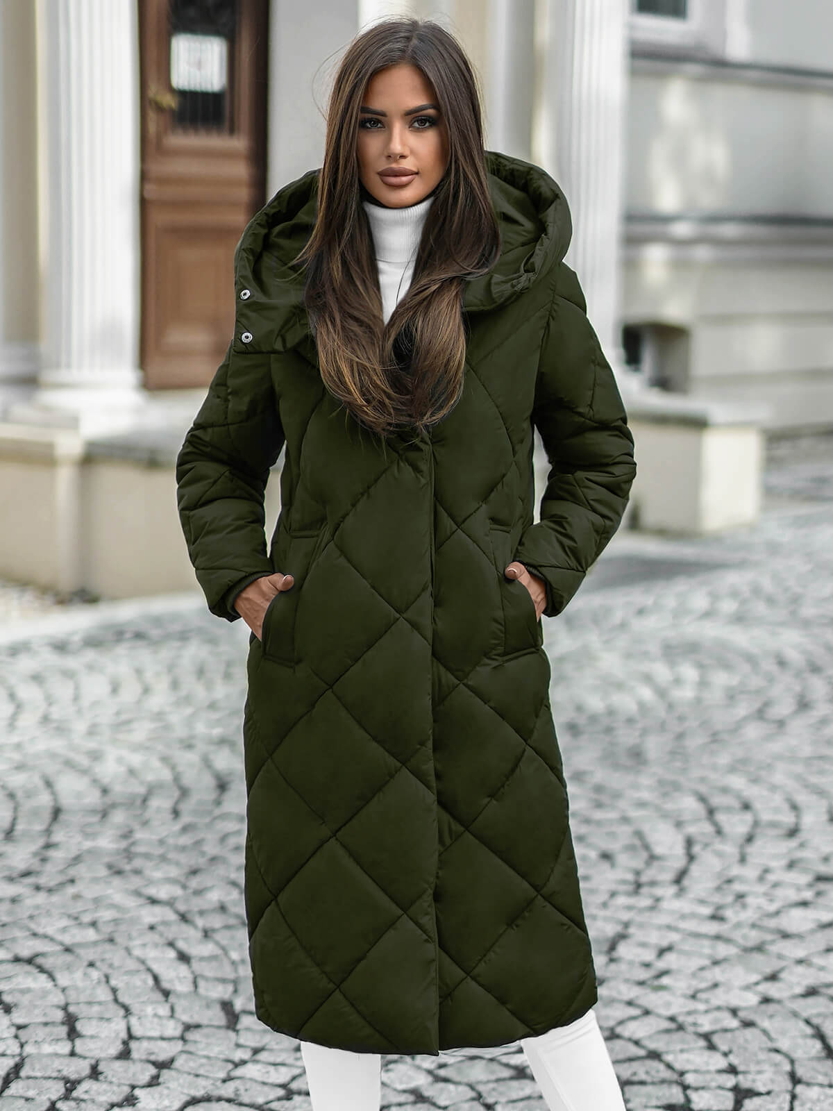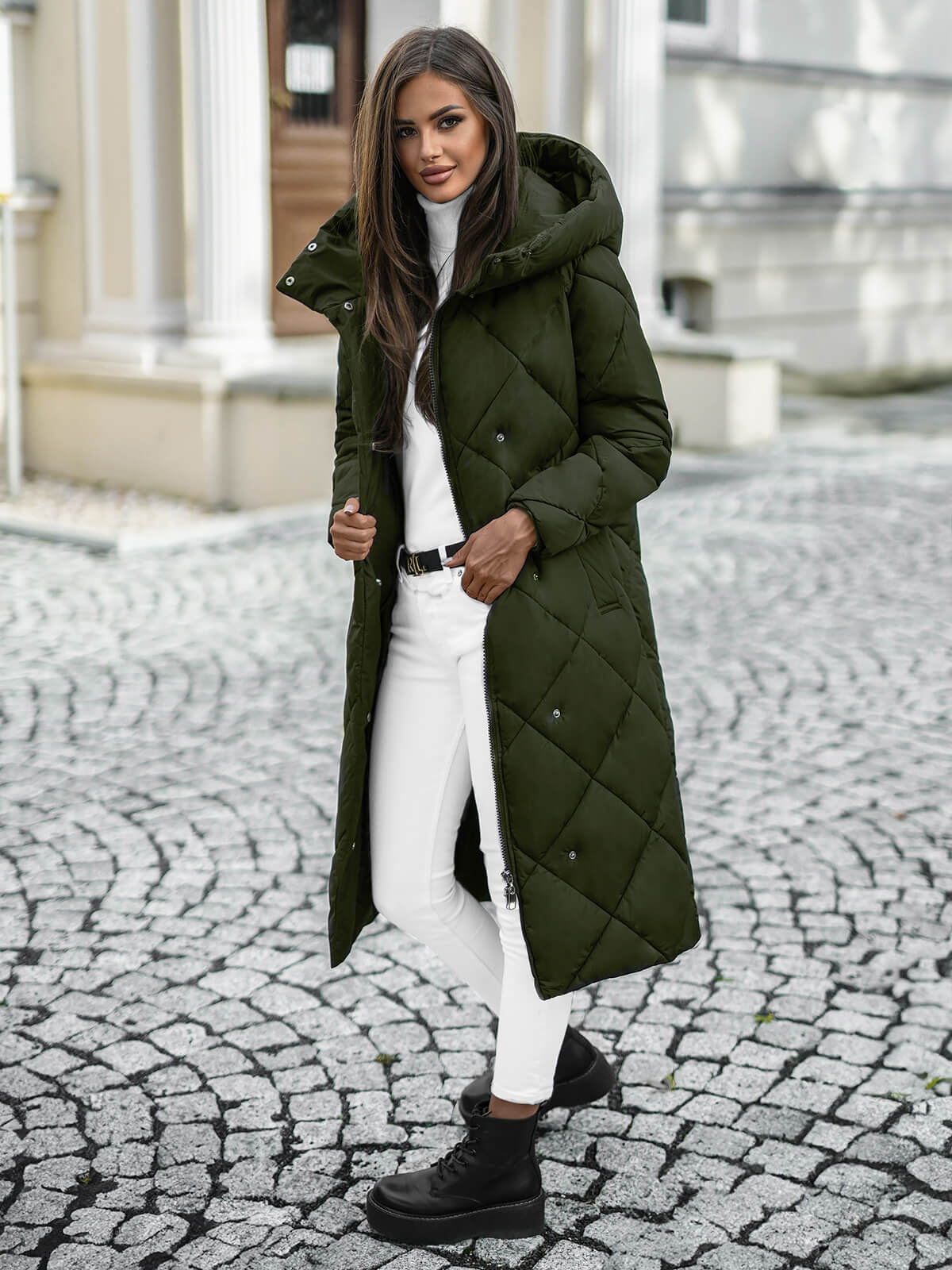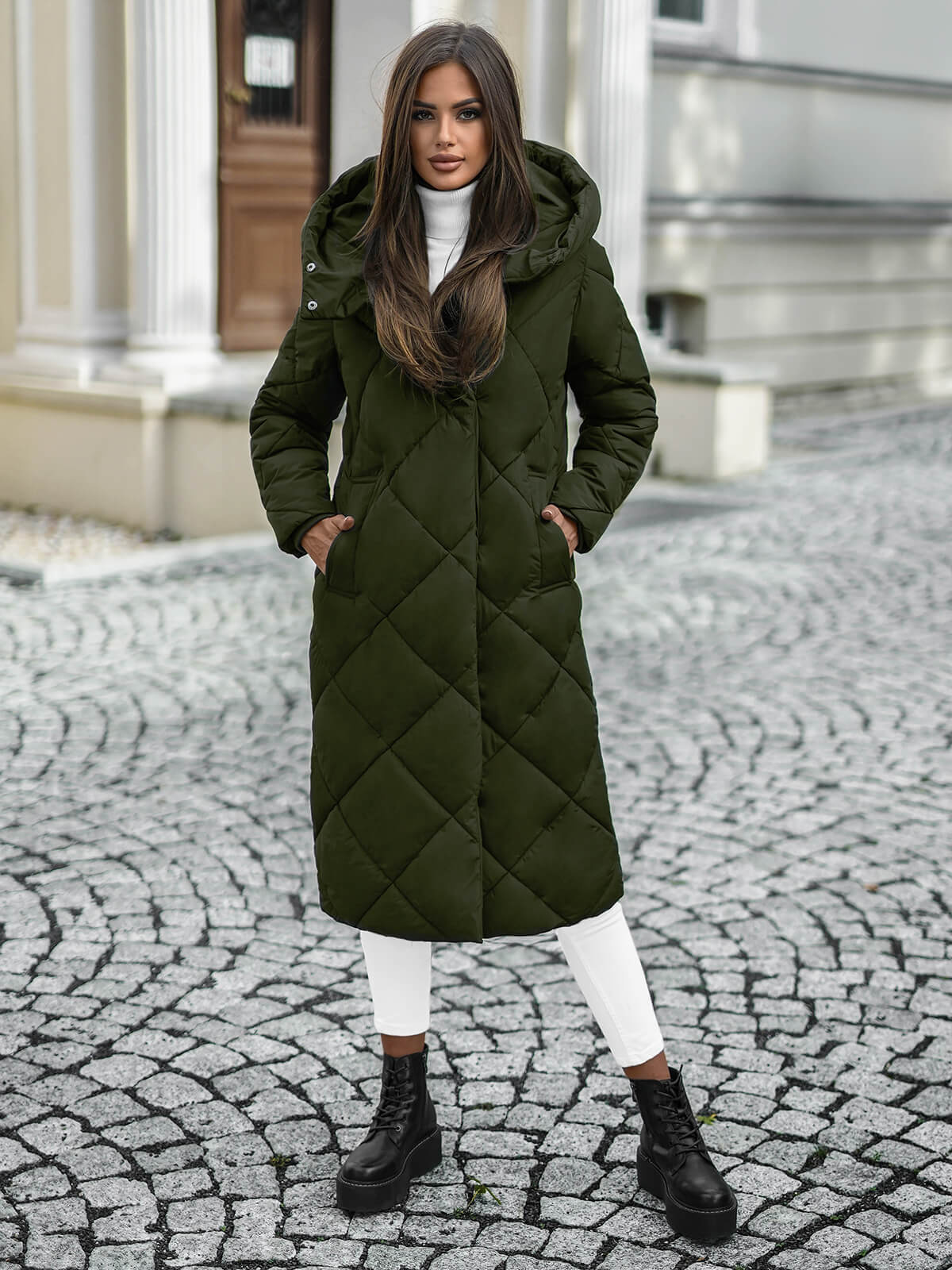 Moteriška žieminė striukė ilga dygsniuota žalia OZONEE JS/5M3173/136