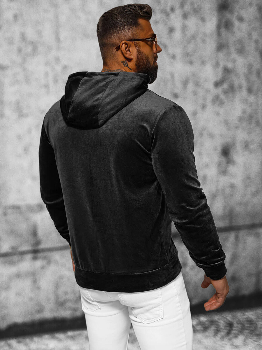 Vyriškas veliūrinis megztinis su gobtuvu juodos spalvos OZONEE JS/8B1168/3 - stilius ir patogumas viename