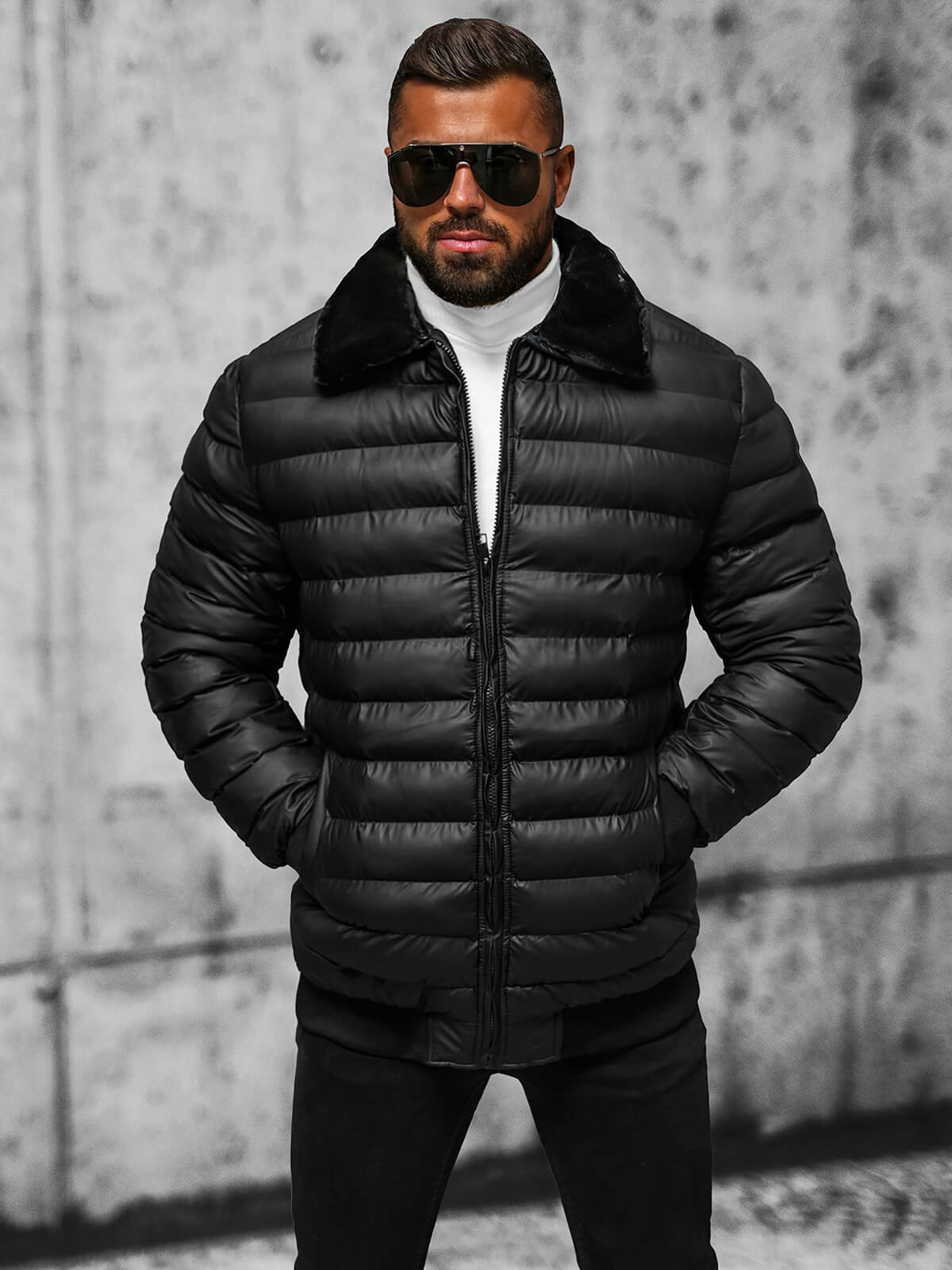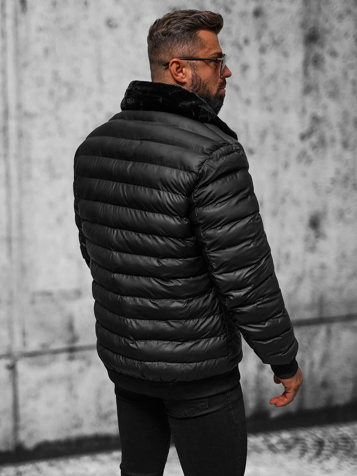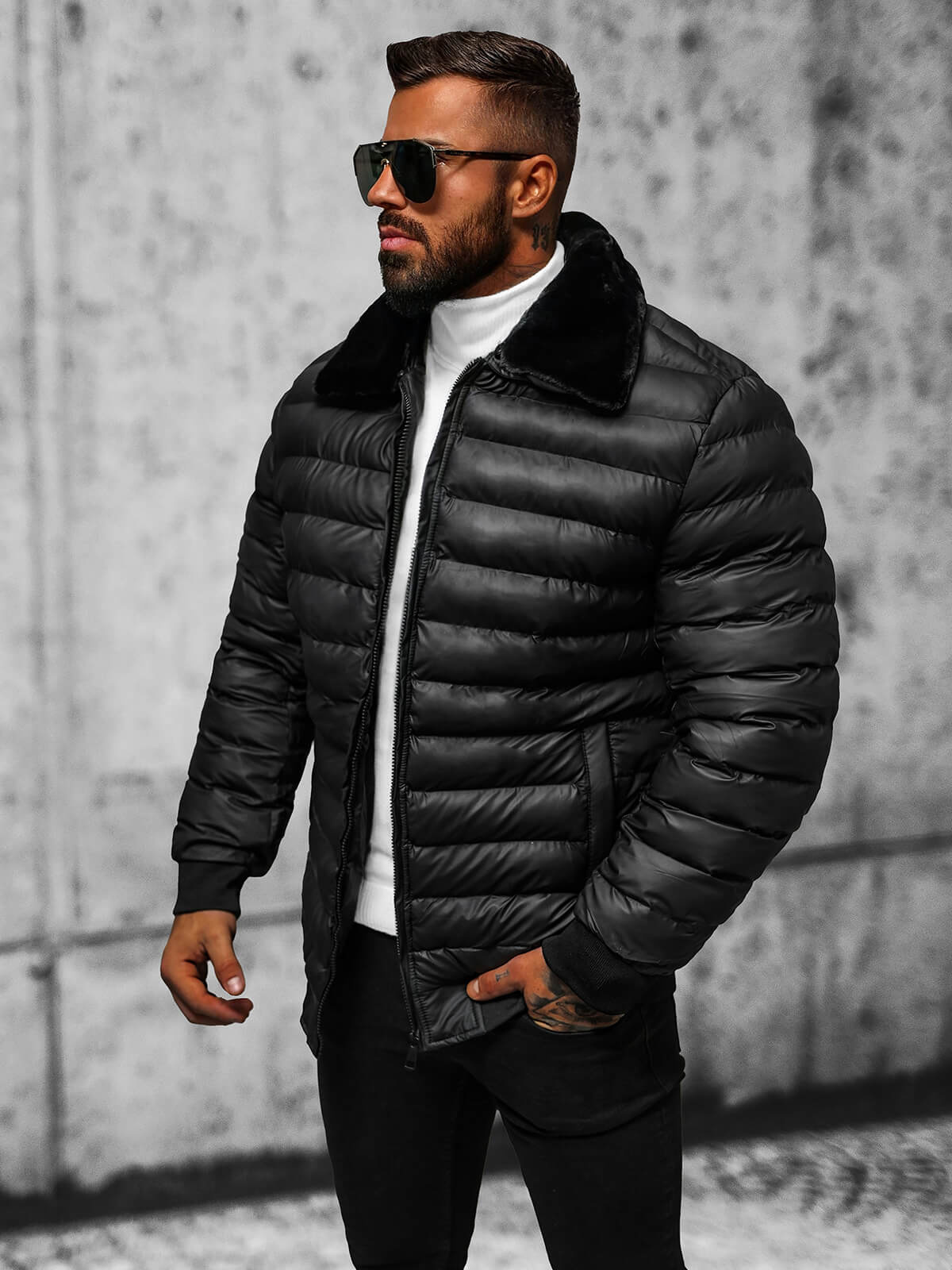 Moderni elegancija ir miesto stilius - Vyriška dygsniuota striukė juoda OZONEE JS/31M5012