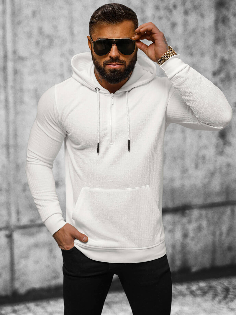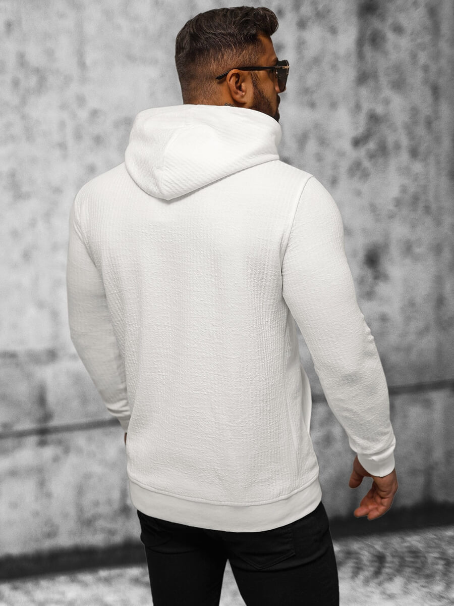 Vyriškas ecru spalvos džemperis su gobtuvu OZONEE O/TB2273 - tai pasiūlymas vyrams, vertinantiems patogumą ir madingą išvaizdą. Pagamintas iš aukščiausios kokybės medžiagaow, jis garantuoja patogumą dėvėti visą dieną. Iš dalies atsegamas, su madingu išgaubtu raštu, jis ne tik praktiškas, bet ir stilingas. Apvadas ir briaunuotos rankovės užtikrina puikų prigludimą.