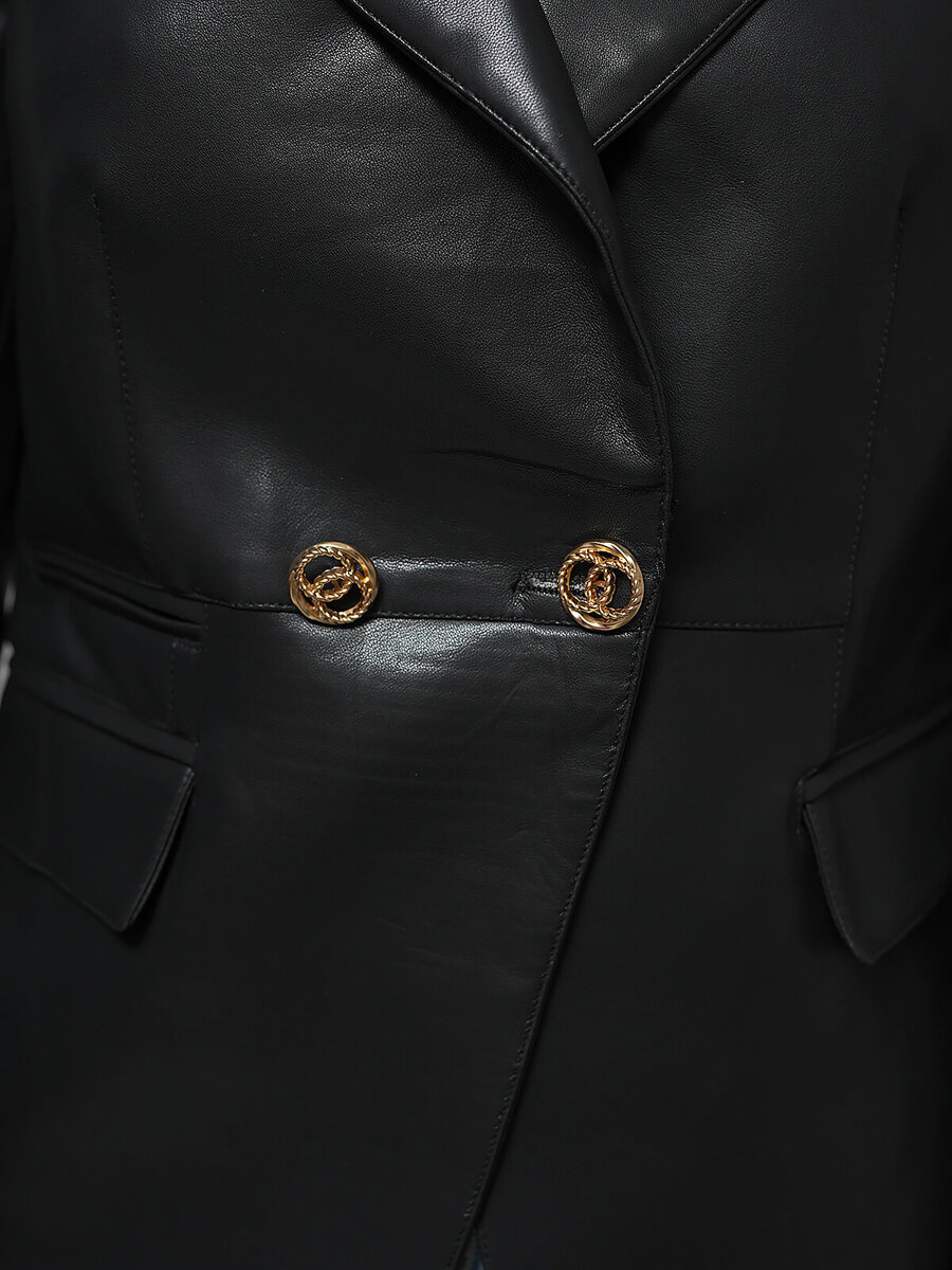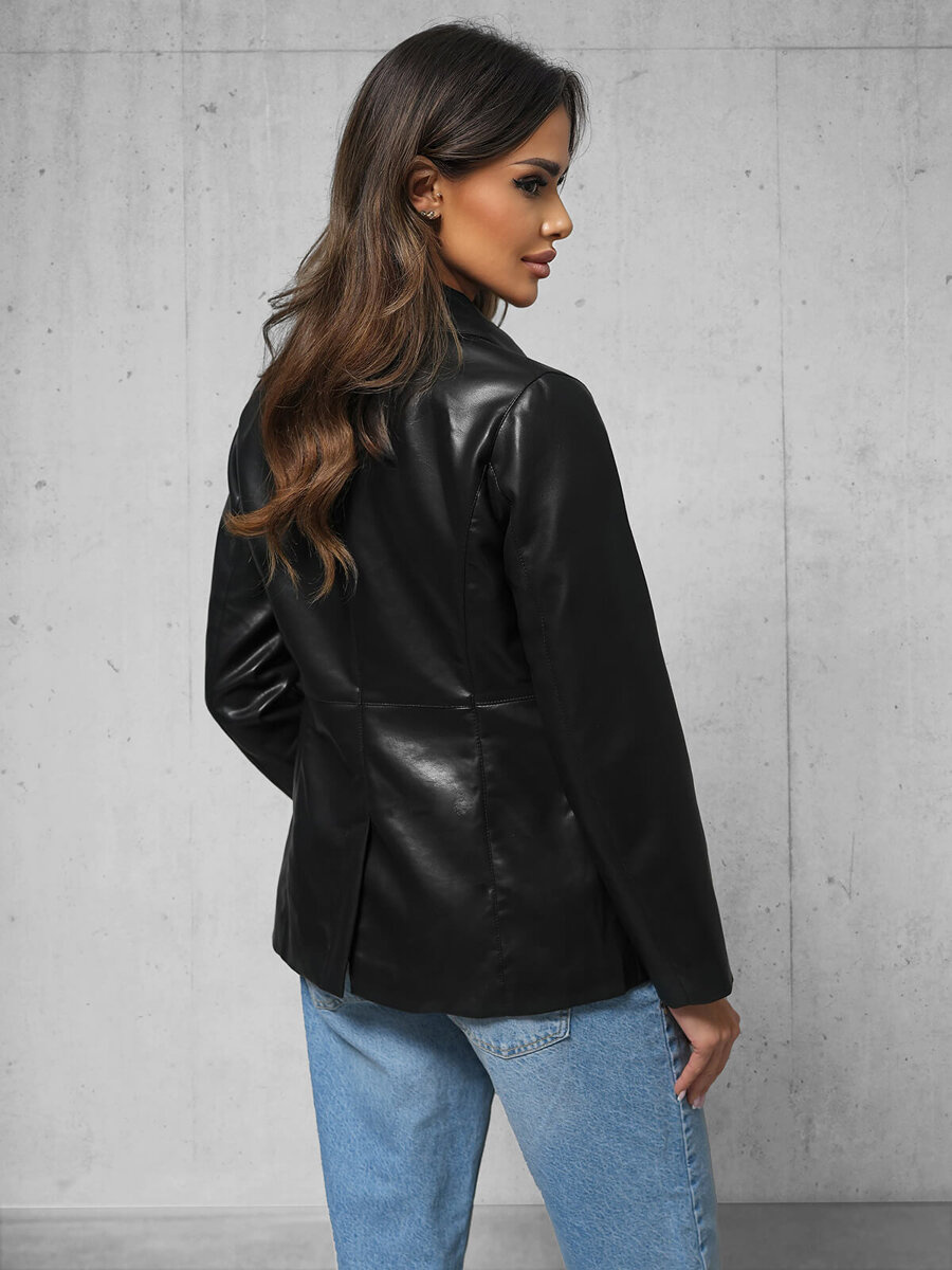Moteriška juodos spalvos odinė striukė OZONEE JS/11Z8121 - elegancija ir patogumas