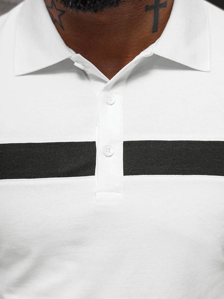 - Šie klasikiniai polo marškinėliai iš medvilnės mišinio turi Kent tipo apykaklę ir užsegimą su trimis sagomis, taip pat rankovių rankogalius su elastingomis juostomis, suteikiančiomis puikią
