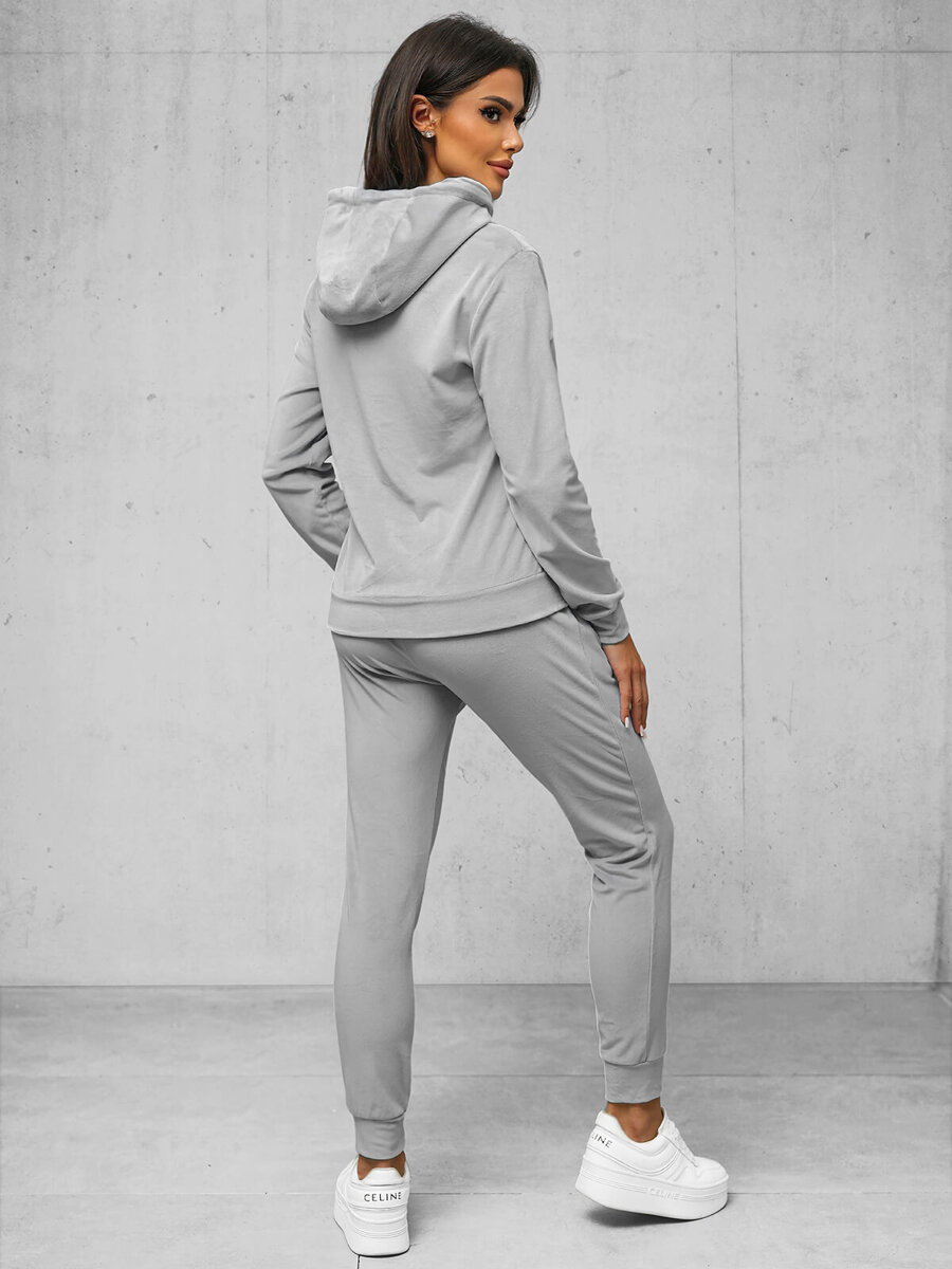 Pilkas moteriškas veliūrinis sportinis kostiumas OZONEE JS/8C1176/2Z