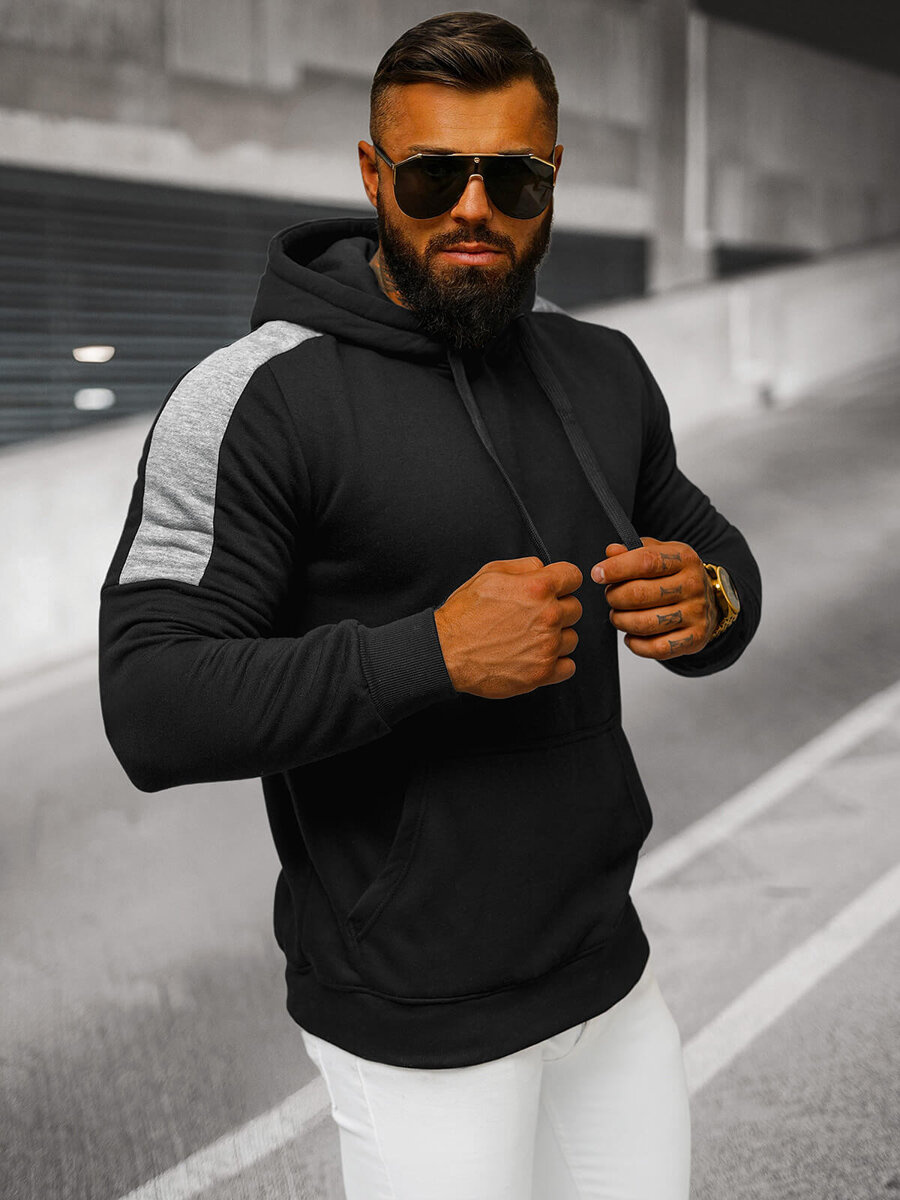 Juoda vyriškas džemperis su gobtuvu OZONEE JS/8B1311/3