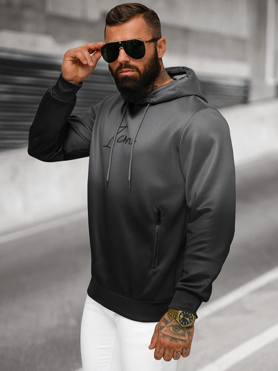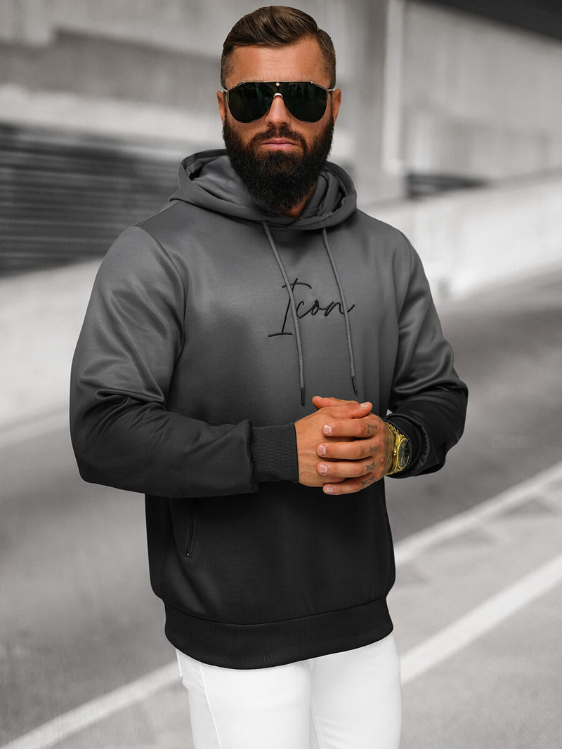 Grafito-juodas vyriškas džemperis su gobtuvu OZONEE JS/27B6501/5