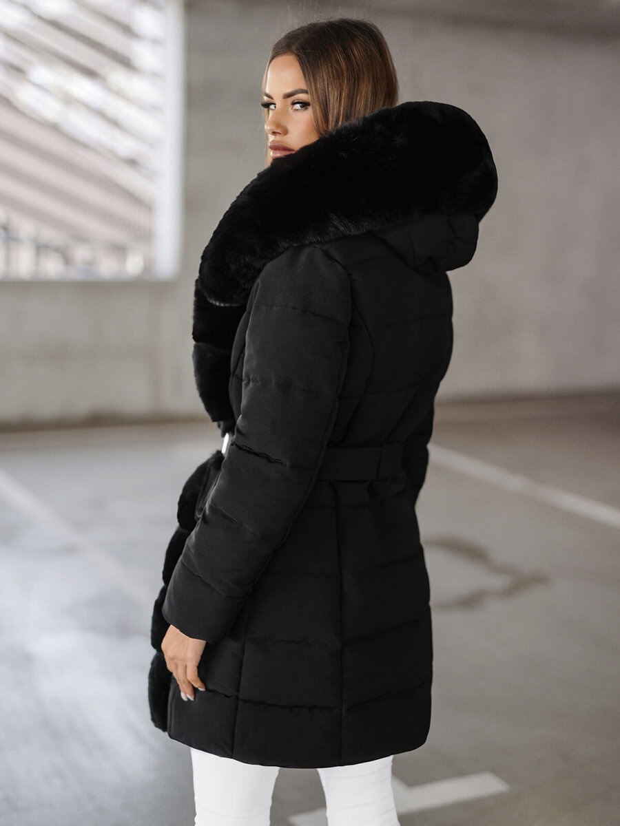Moteriška žieminė ilga striukė su kailiu juoda OZONEE JS/11Z8096 yra idealus pasirinkimas žiemos pasivaikščiojimams, einant į darbą ar susitikus su draugais. Ji puikiai derės ir prie kasdienės, ir prie elegantiškesnės aprangos. Ją galima derinti su džinsais, kelnėmis medžiagaarba sijonais. Dėl universalios spalvų gamos jis puikiai dera prie daugumos drabužių, esančių moters spintoje.