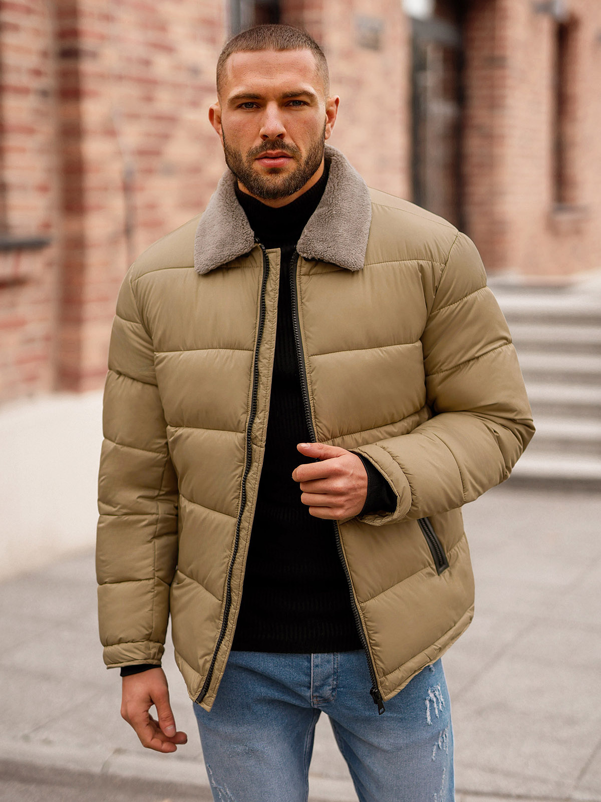 Šiuolaikinė elegancija vyriškiems drabužiams - Vyriška dygsniuota smėlio spalvos striukė OZONEE JS/31M5010