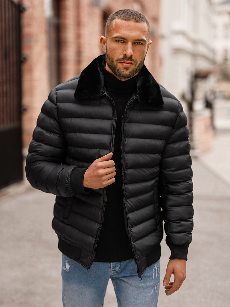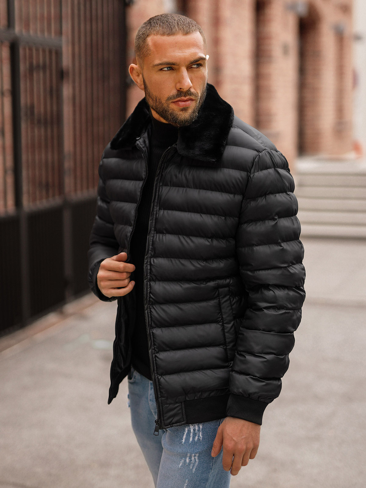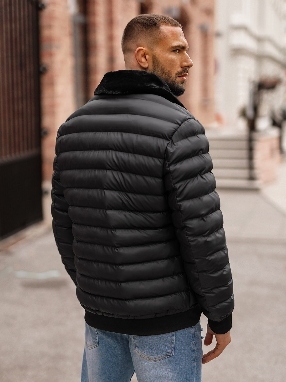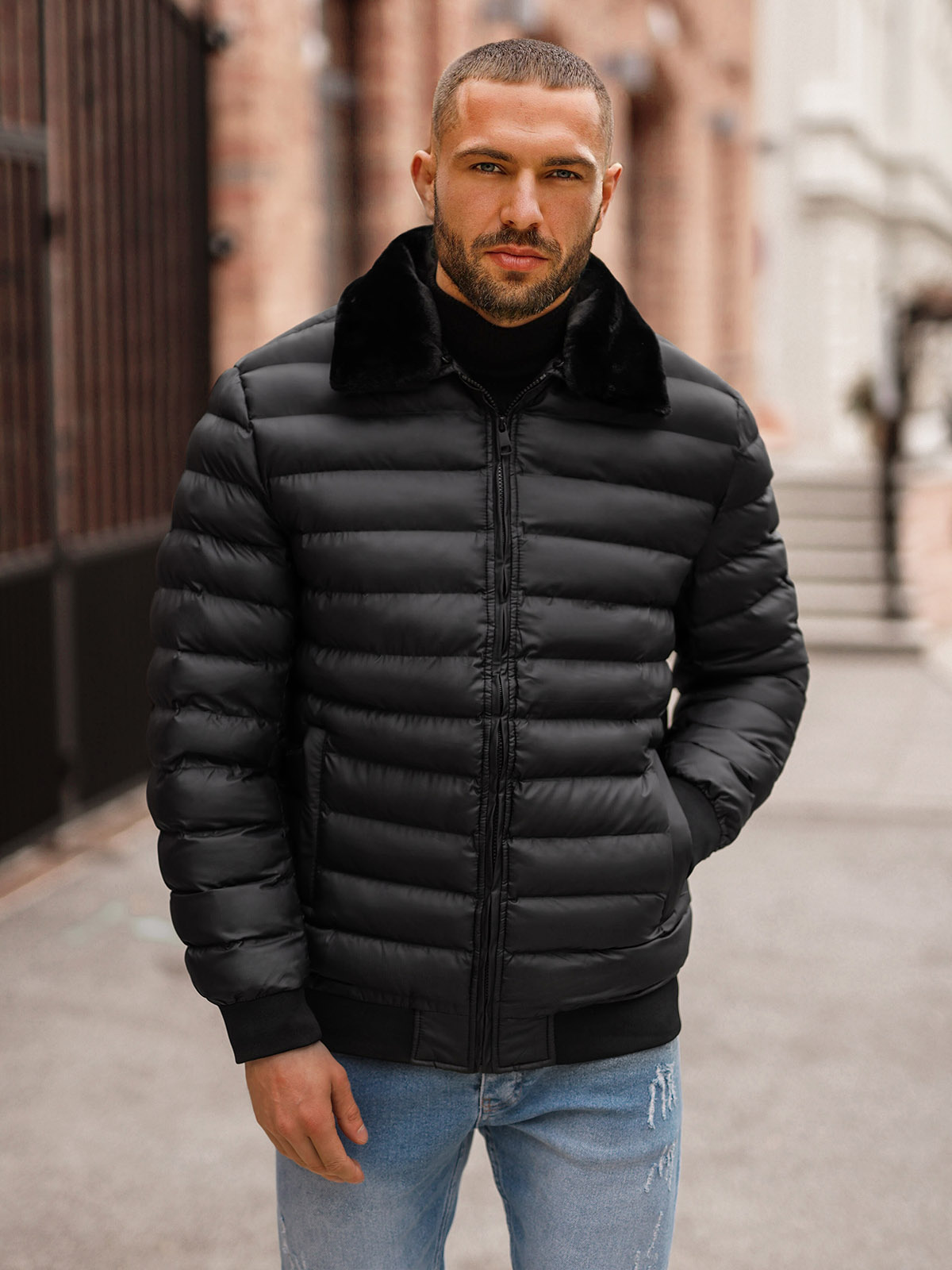 Moderni elegancija ir miesto stilius - Vyriška dygsniuota striukė juoda OZONEE JS/31M5012