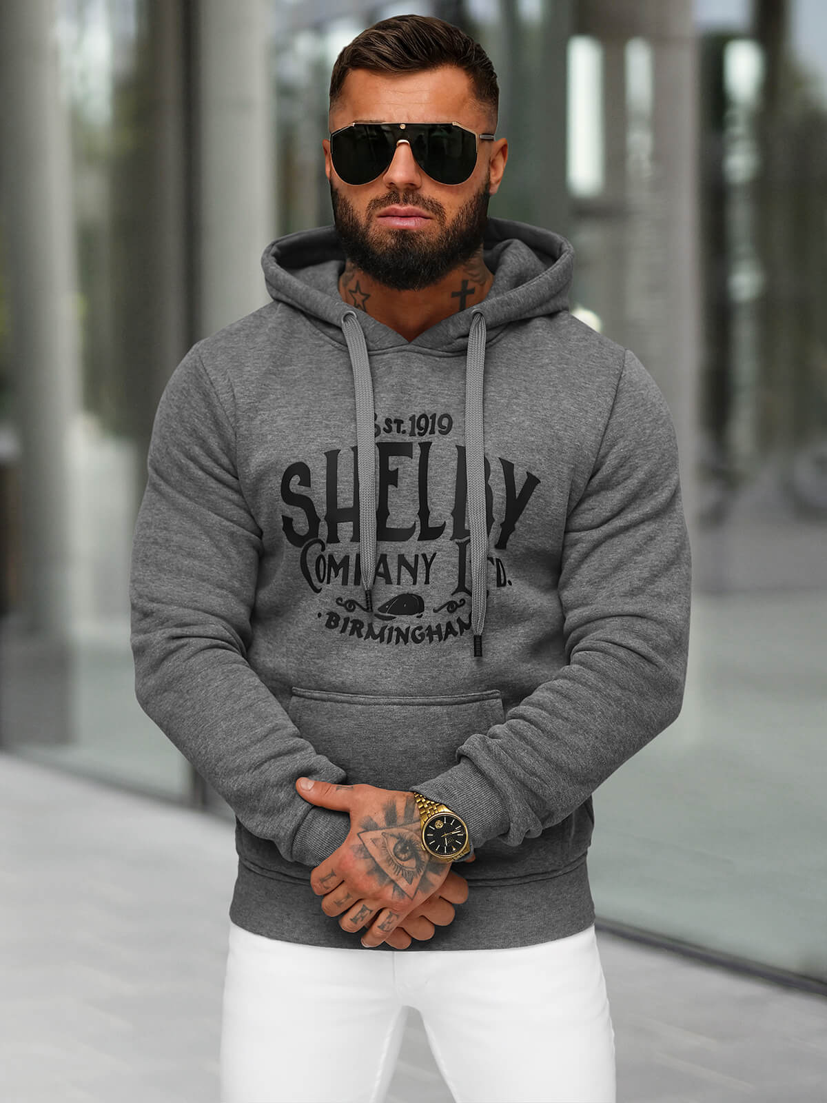 Grafitinis vyriškas džemperis su gobtuvu OZONEE JS/8B1351/5
