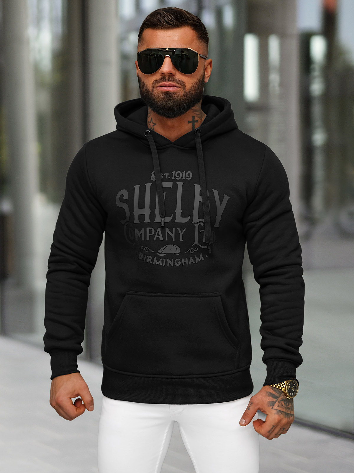 Juoda vyriškas džemperis su gobtuvu OZONEE JS/8B1351/3