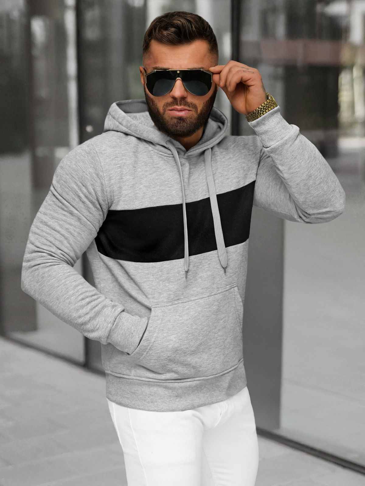 Pilka vyriškas džemperis su gobtuvu OZONEE JS/8B1308/2
