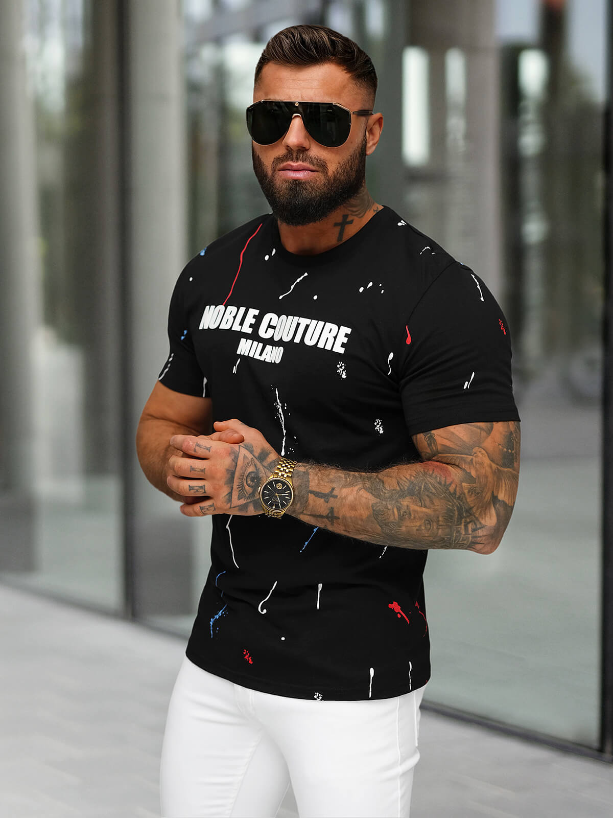 Juodi vyriški marškinėliai OZONEE O/MPO3443