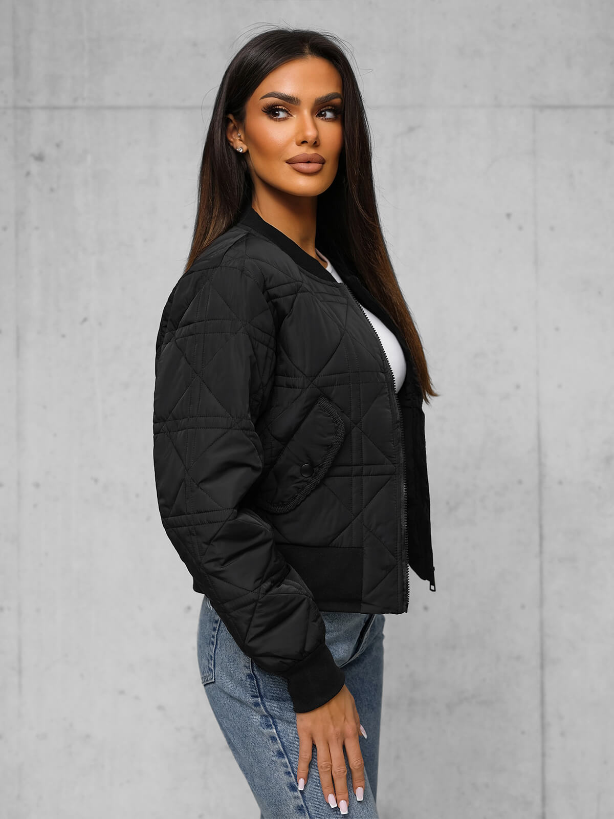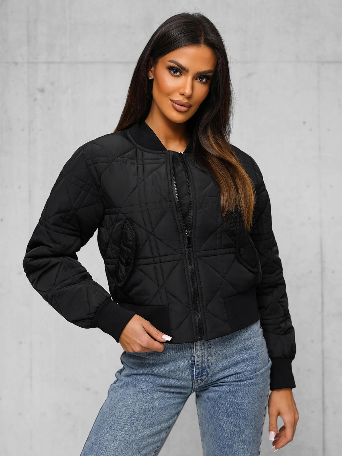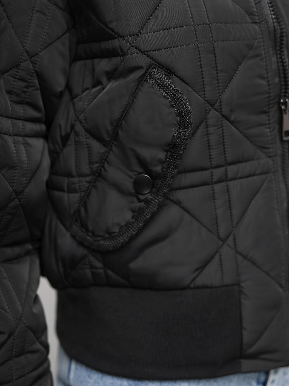 - Ši klasikinė bomber tipo striukė turi užtrauktuką ir šonines kišenes, o apačia ir rankovės yra užbaigtos elastiniu kraštu, kad puikiai priglustų