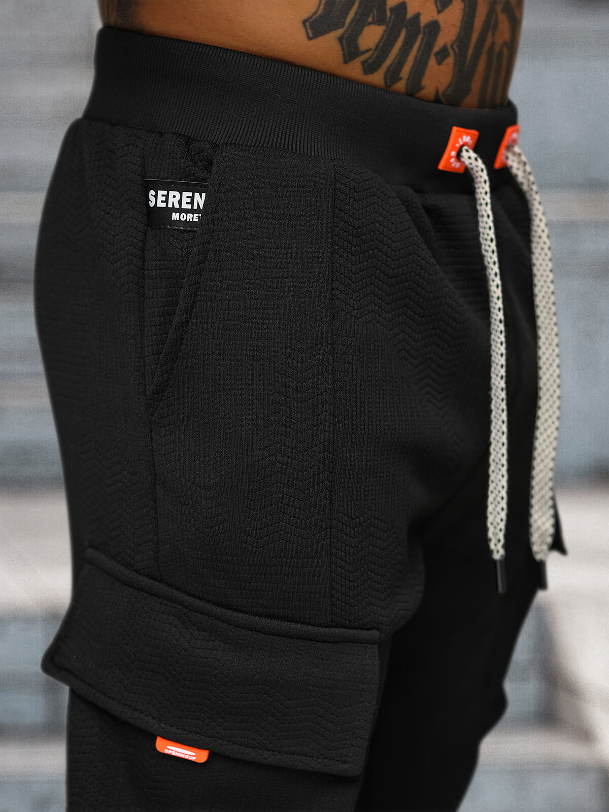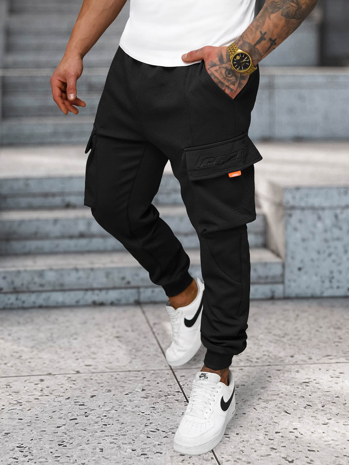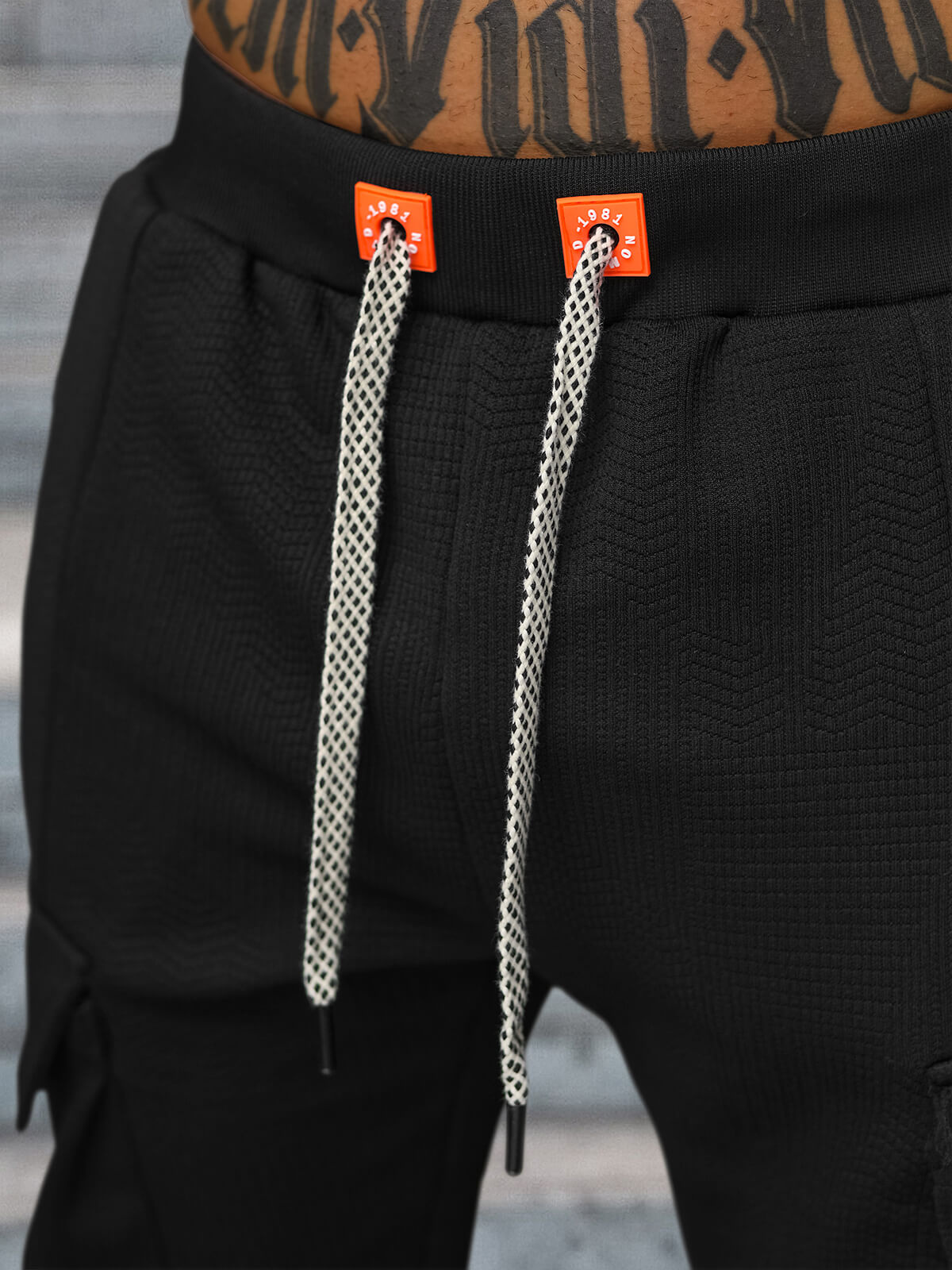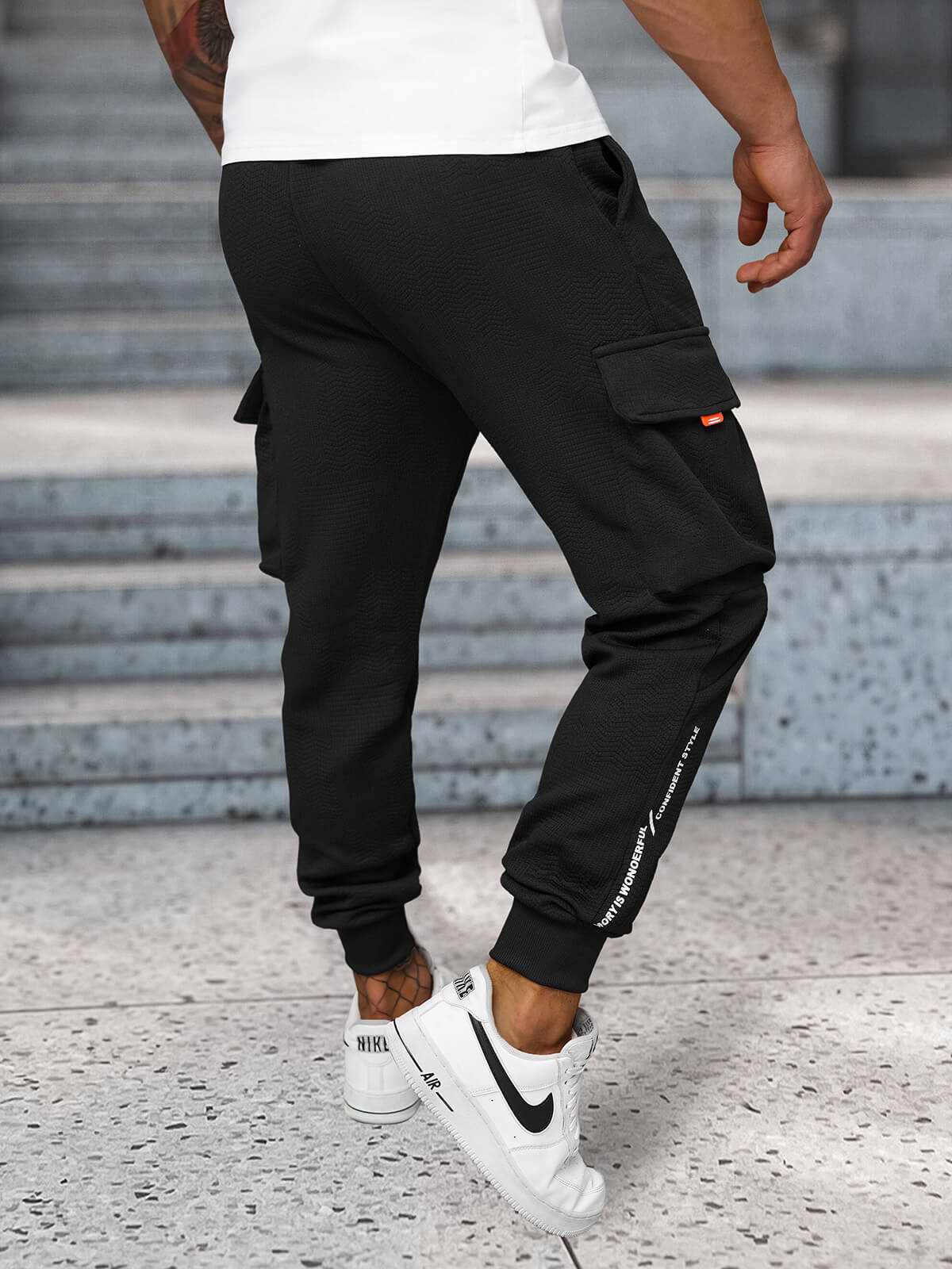 - Šios sportinės kelnės iš minkštos medvilnės mišinio turi elastinį juosmenį ir rankogalius, kurie suteikia patogų dėvėjimo jausmą