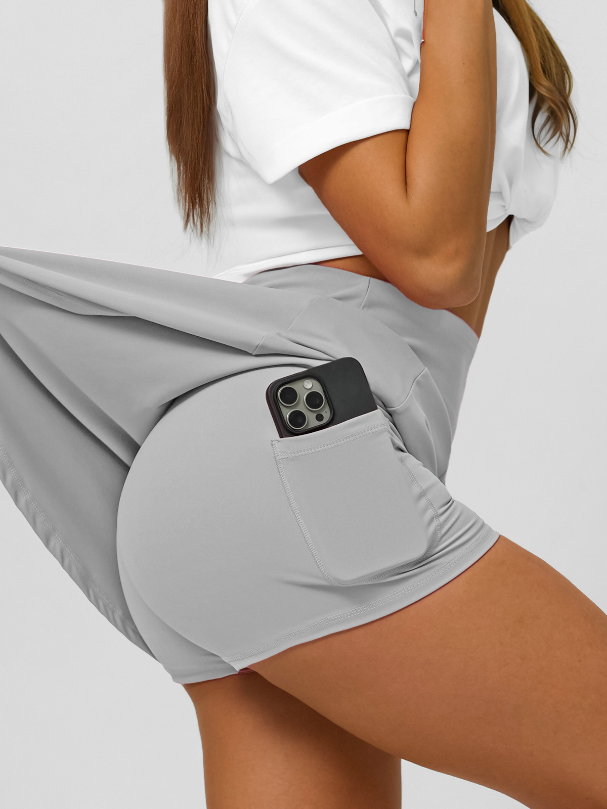 - Šis stilingas sportinis sijonas su šortais turi madingas klostes ir yra pagamintas iš kokybiškos nailono ir poliesterio mišinio