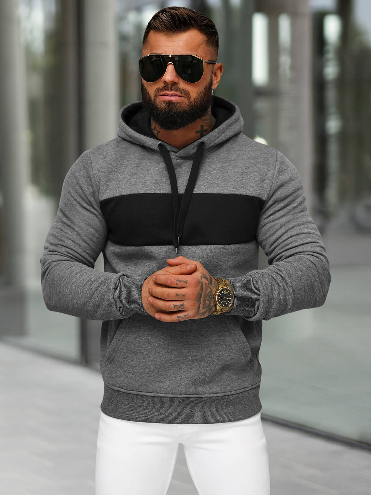 - Šis klasikinis džemperis pagamintas iš medvilnės mišinio, turi gobtuvą ir kontrastingas medžiagos jungtis, taip pat elastines rankogalius ir apačią, kad užtikrintų puikų prigludimą