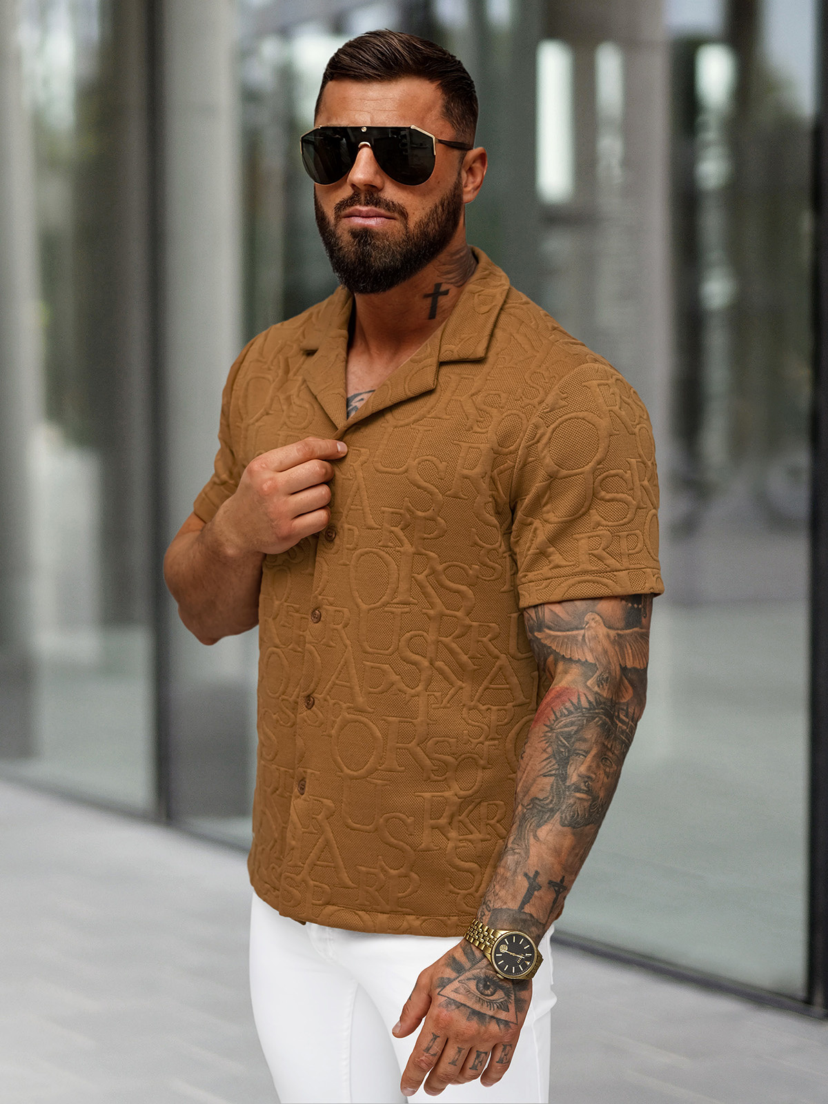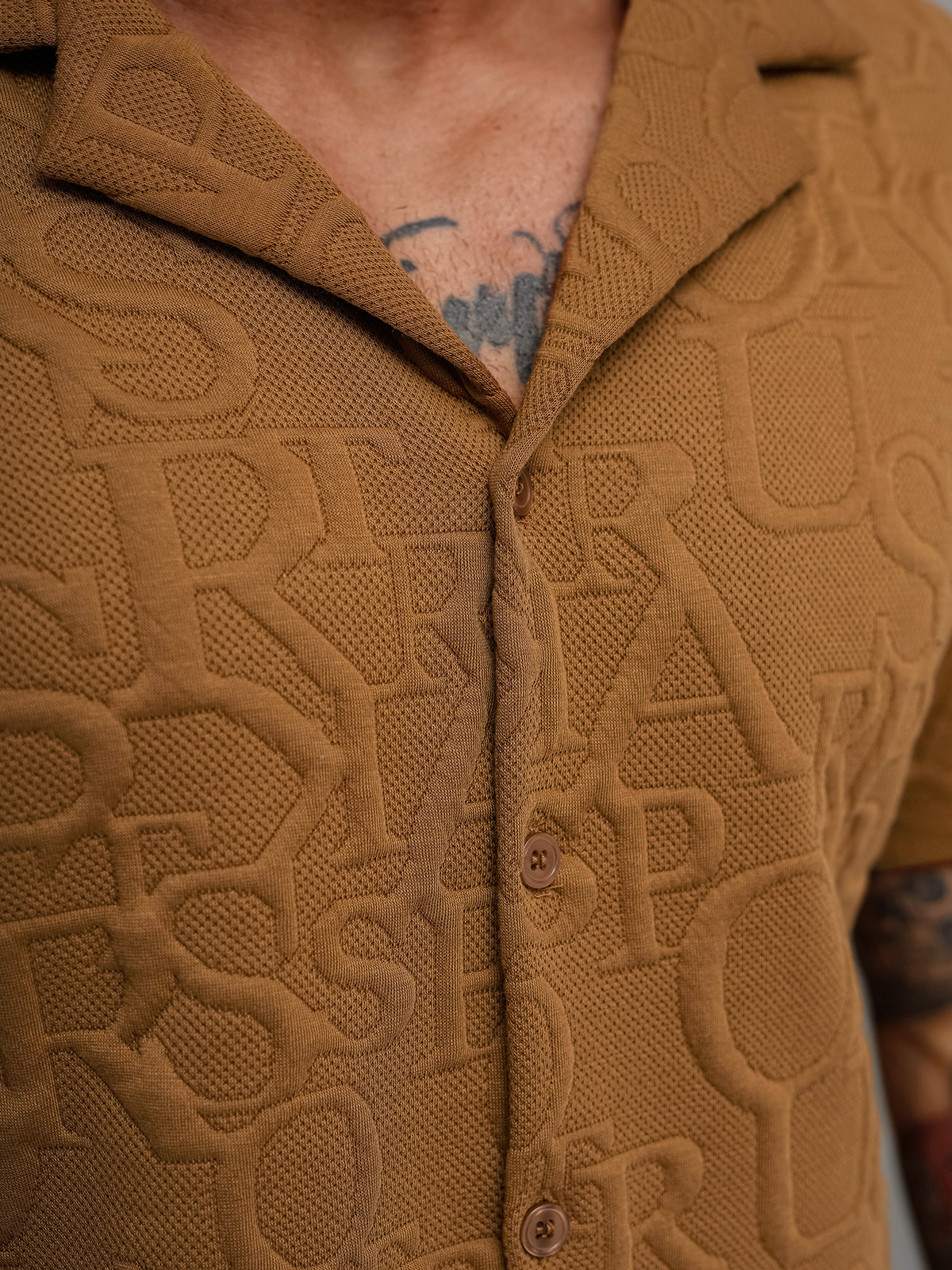 - Išskirtinis iškilus raštas suteikia marškiniams unikalumo ir stiliaus