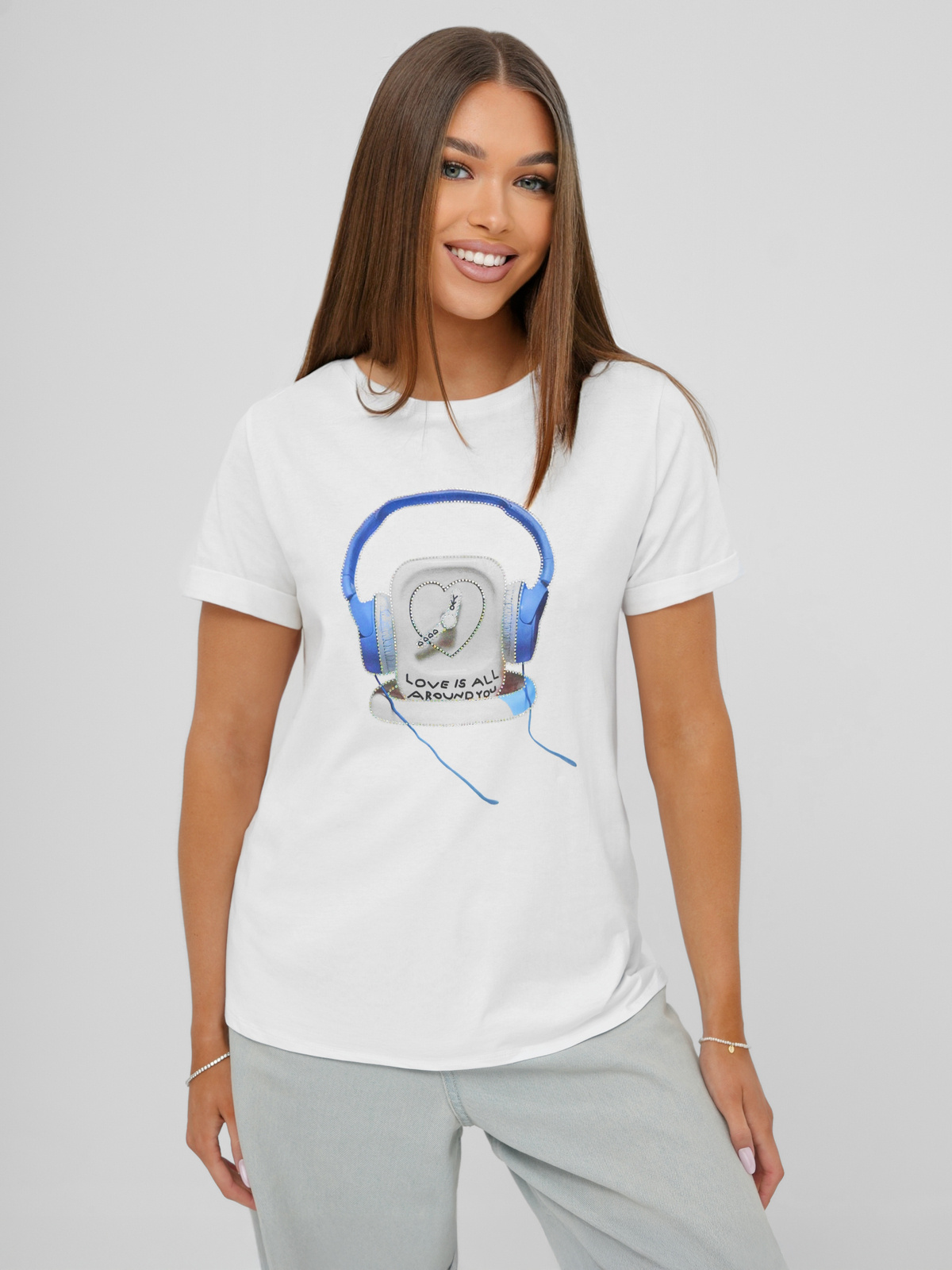Baltai-mėlynas moteriški marškinėliai OZONEE DJ77806