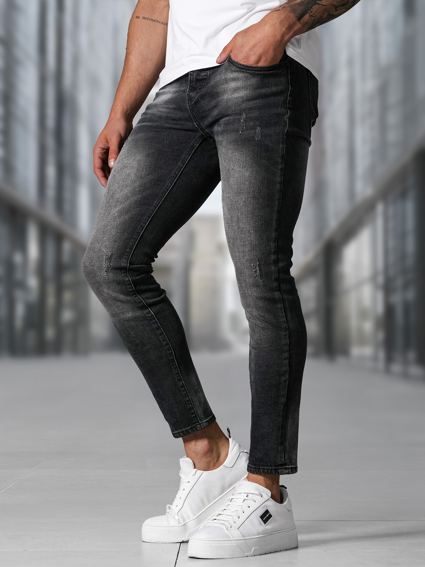 - Unikalūs nusitrynimo efektai ant kelnių suteikia šiuolaikišką ir madingą išvaizdą