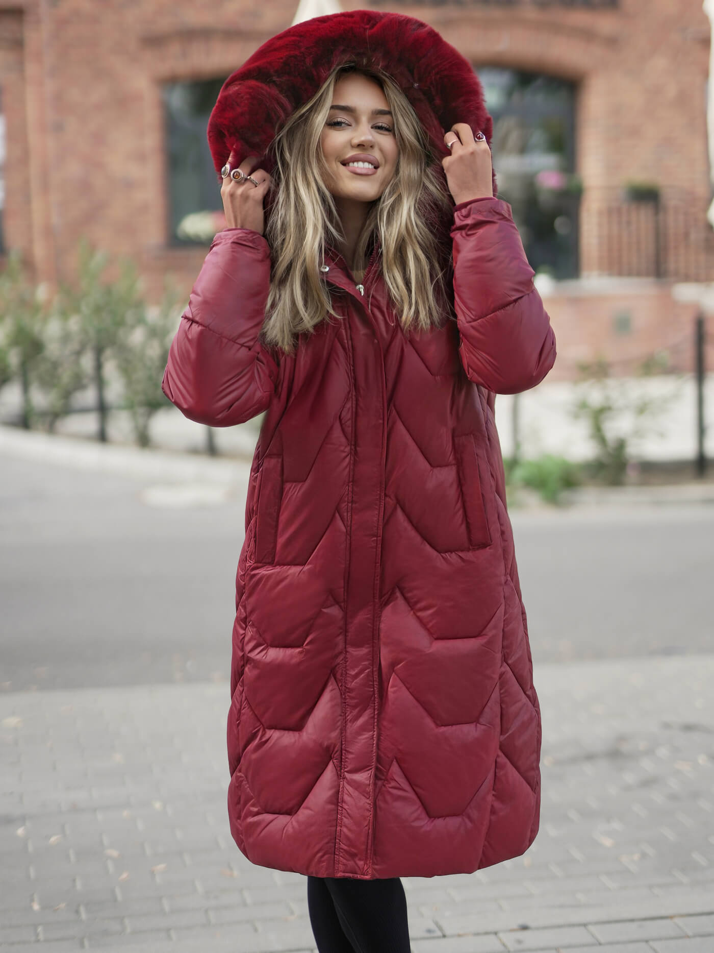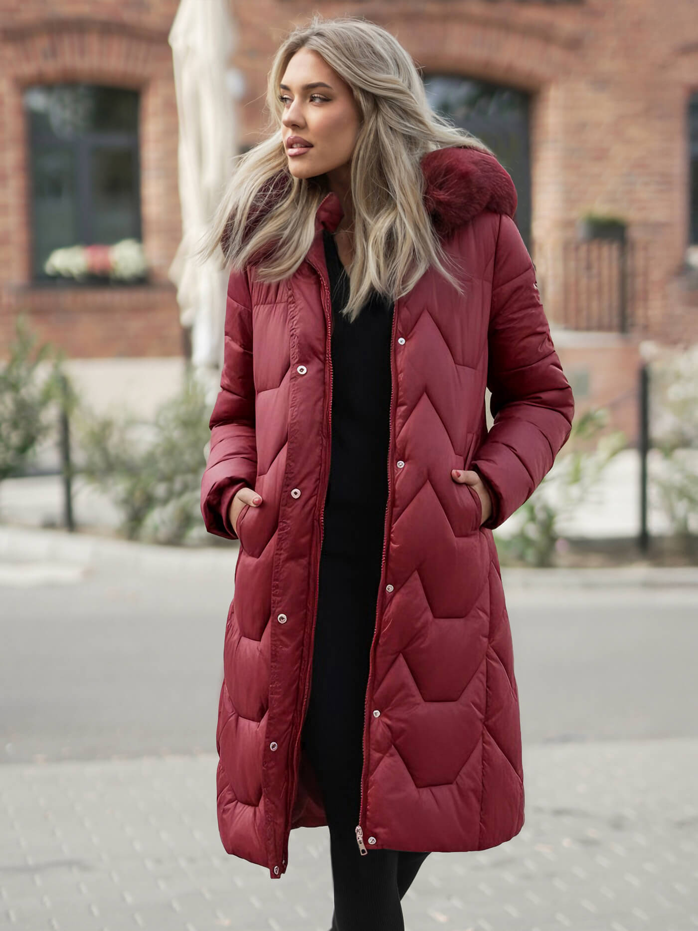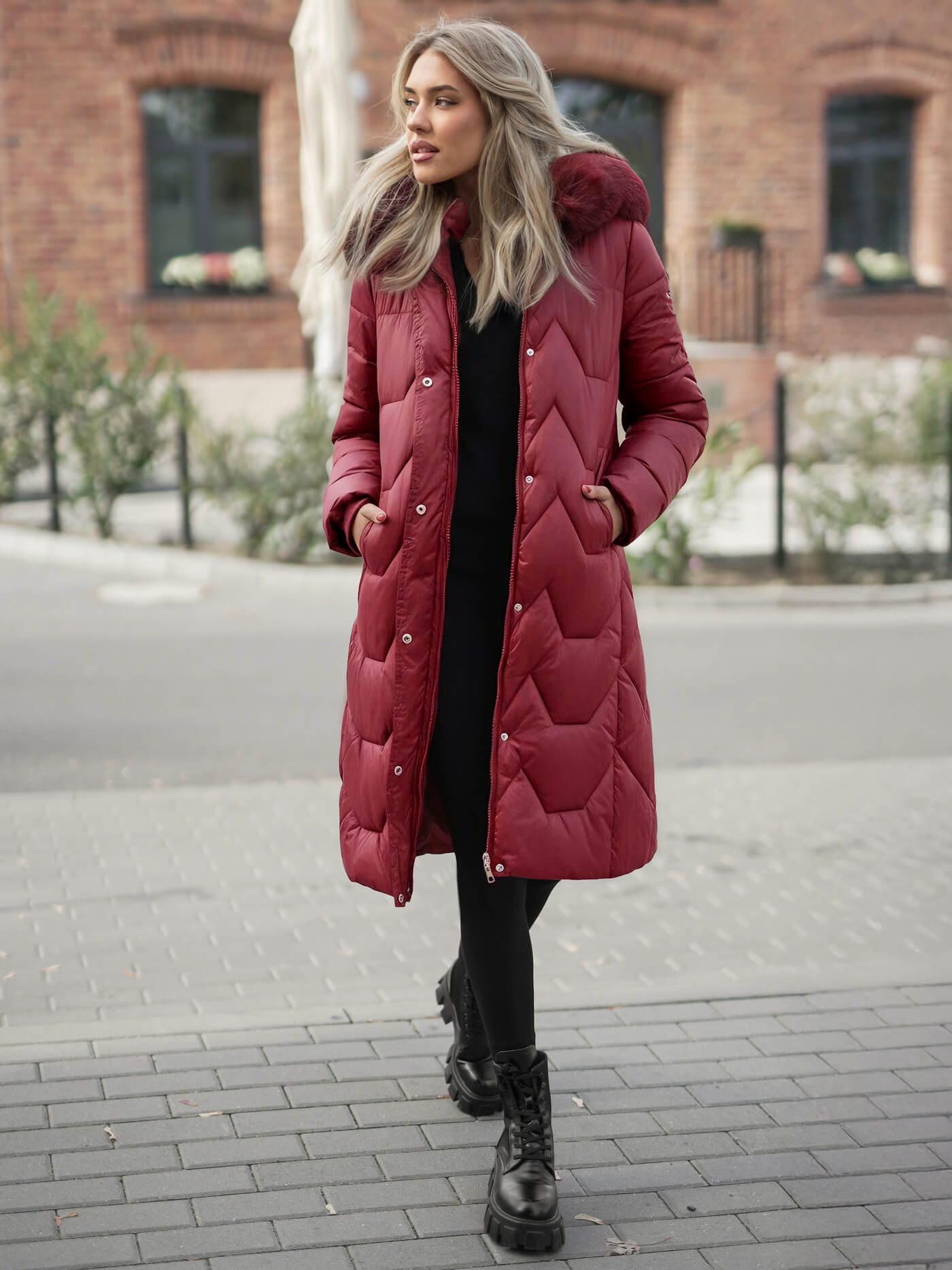 - Moteriška žieminė striukė iki kelių su užtrauktuku ir stilingu kviltavimu