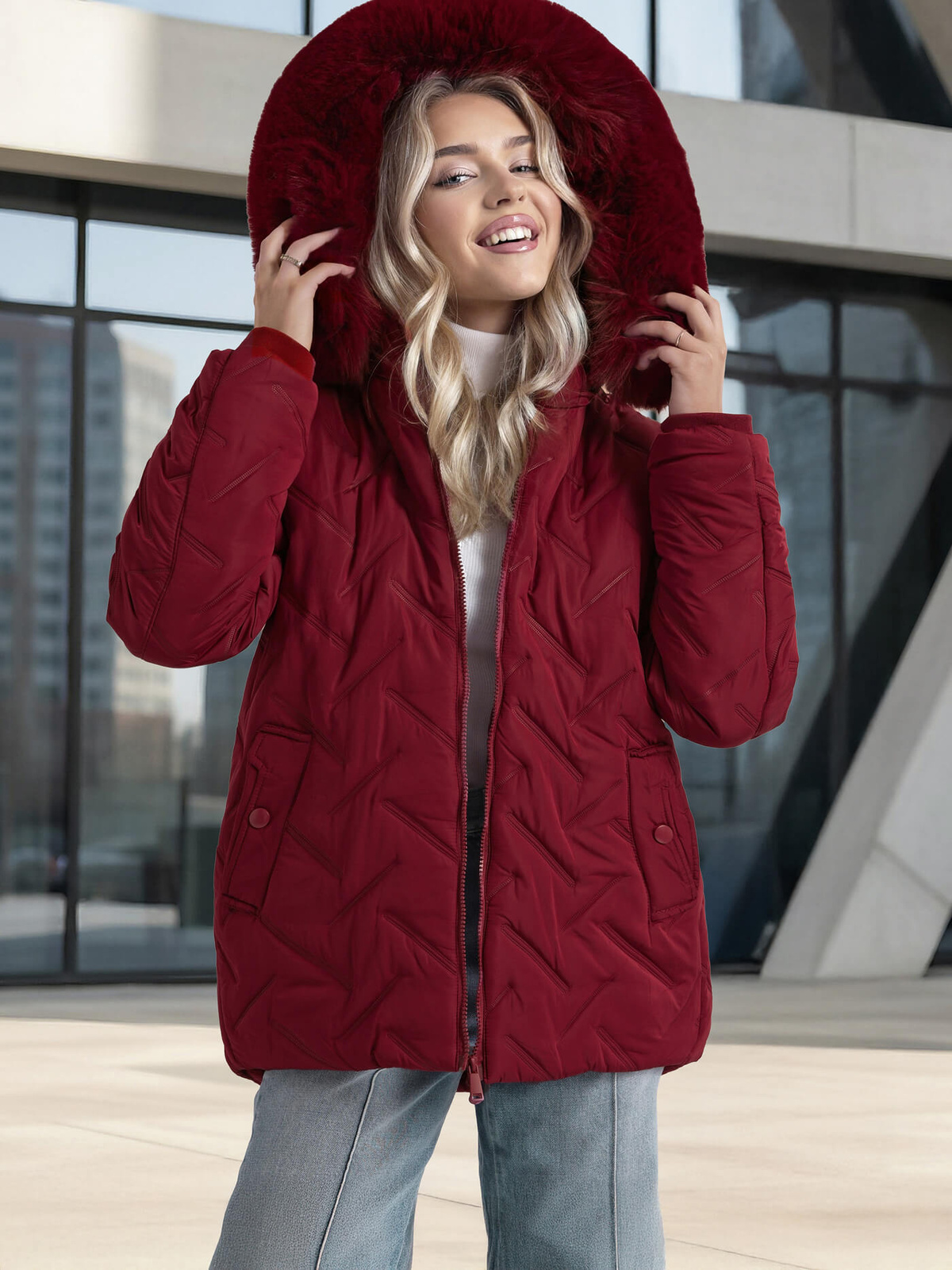 - Moteriška žieminė striukė su nuimamu gobtuvu ir kailiuku