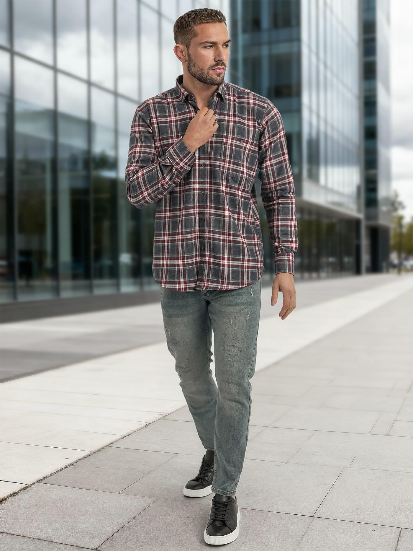 - Vyriški kasdieniai marškiniai languotu raštu