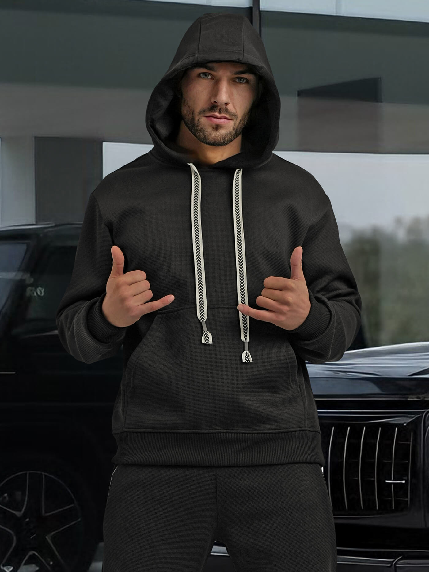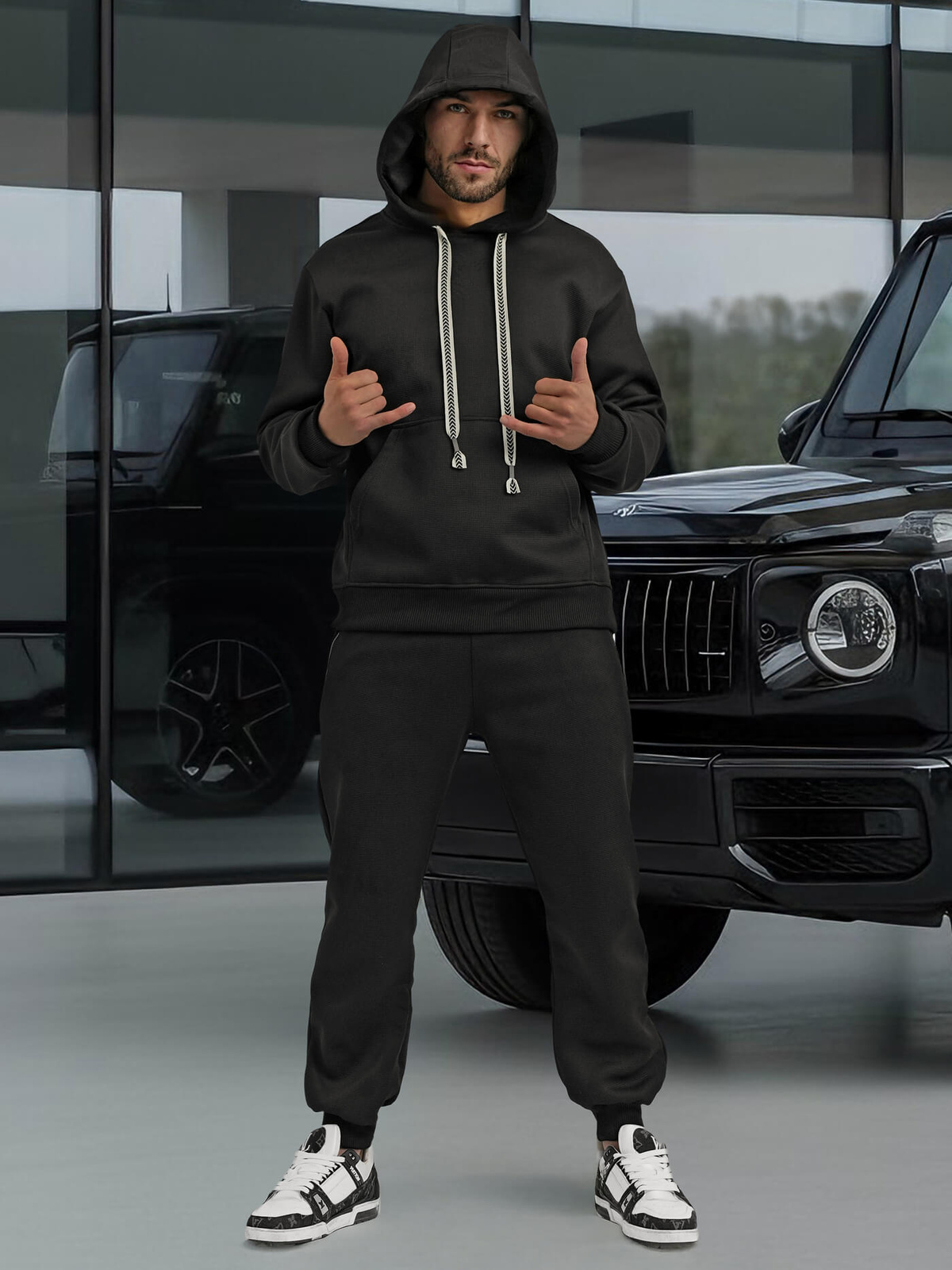 - Vyriškas sportinis komplektas su gobtuvu ir kelnėmis