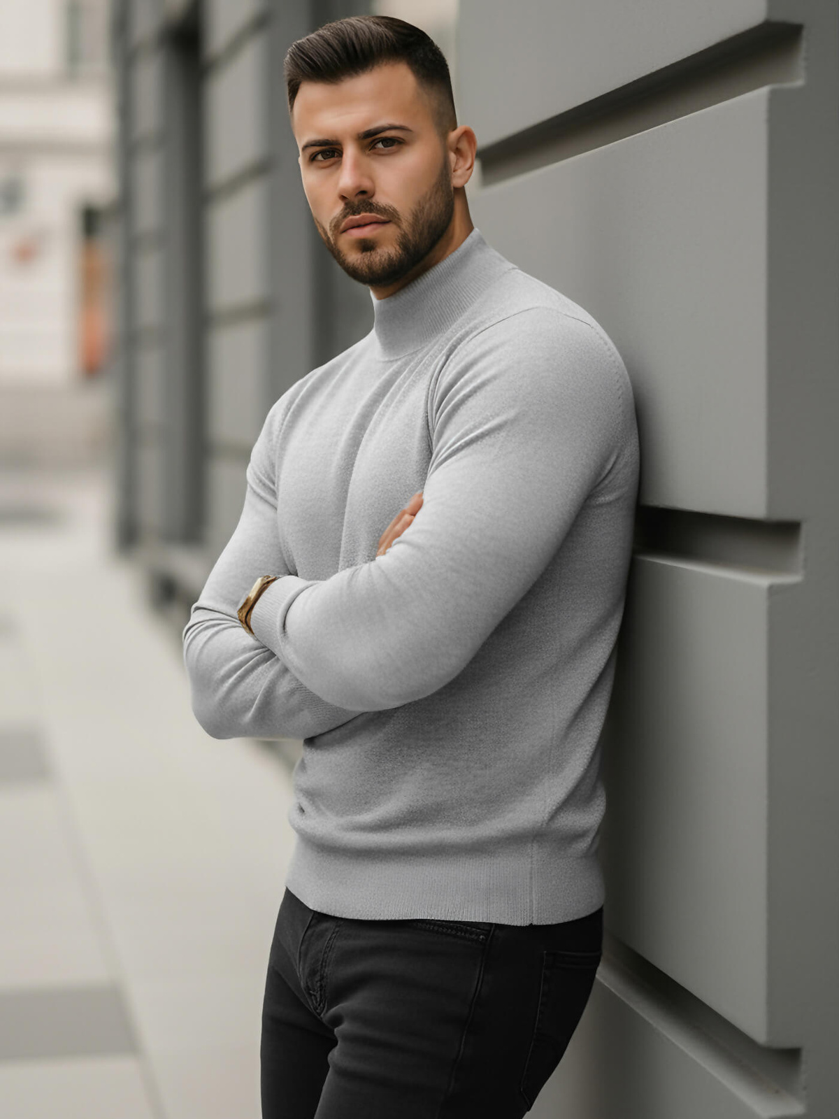 - Vyriškas megztinis su aukštu kaklu