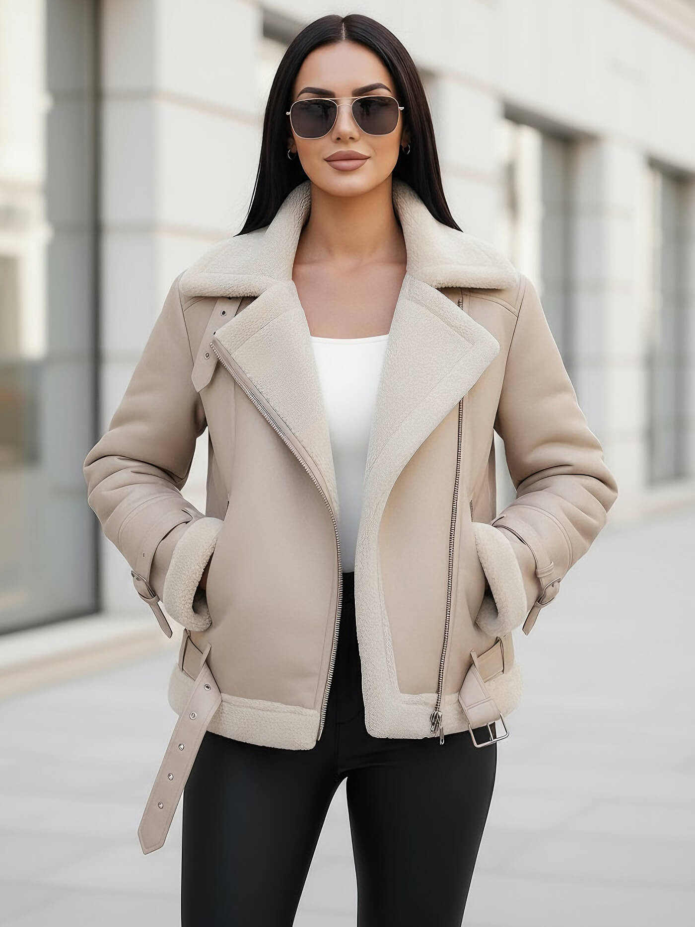 - Moteriška biker stiliaus striukė iš odos imitacijos