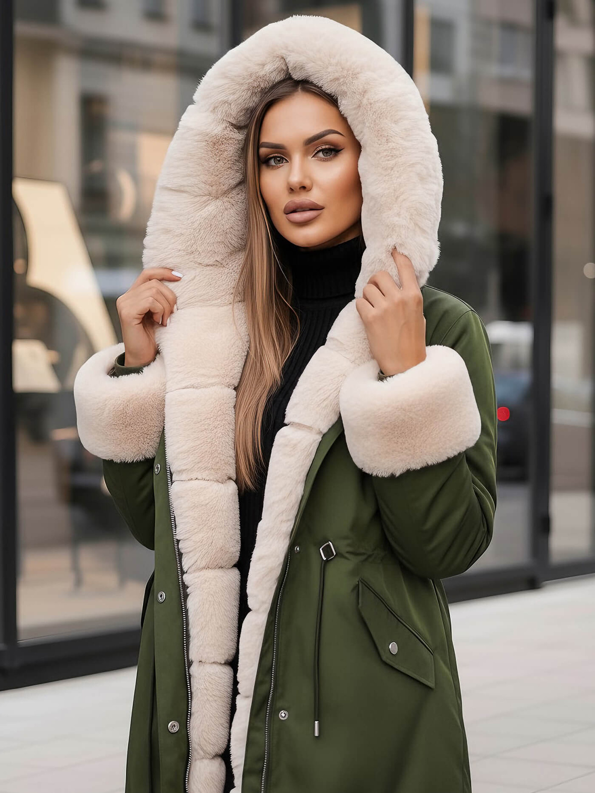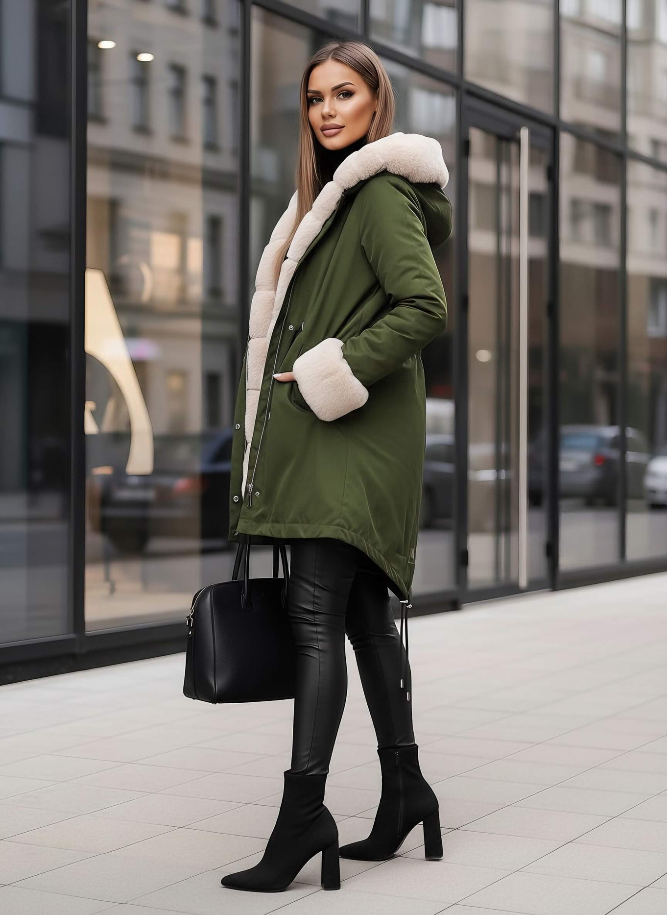 Stilius ir patogumas viename - Moteriška žieminė striukė su kailiu žalia OZONEE JS/M763/136Z