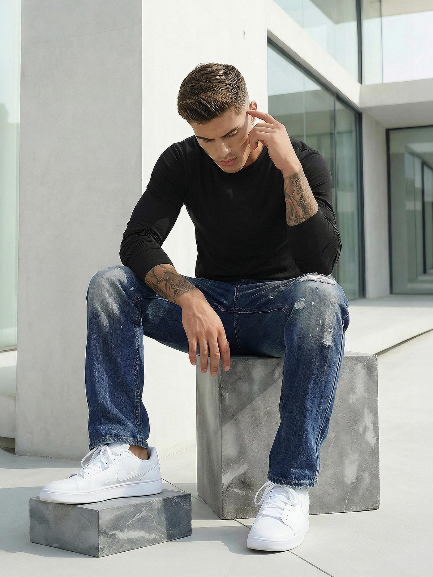 | Dydis | Szerokość w pasie A | Szerokość nogawki od kroku B | Długość całkowita C | Długość nogawki wewnętrzna D | Szerokość na dole E |