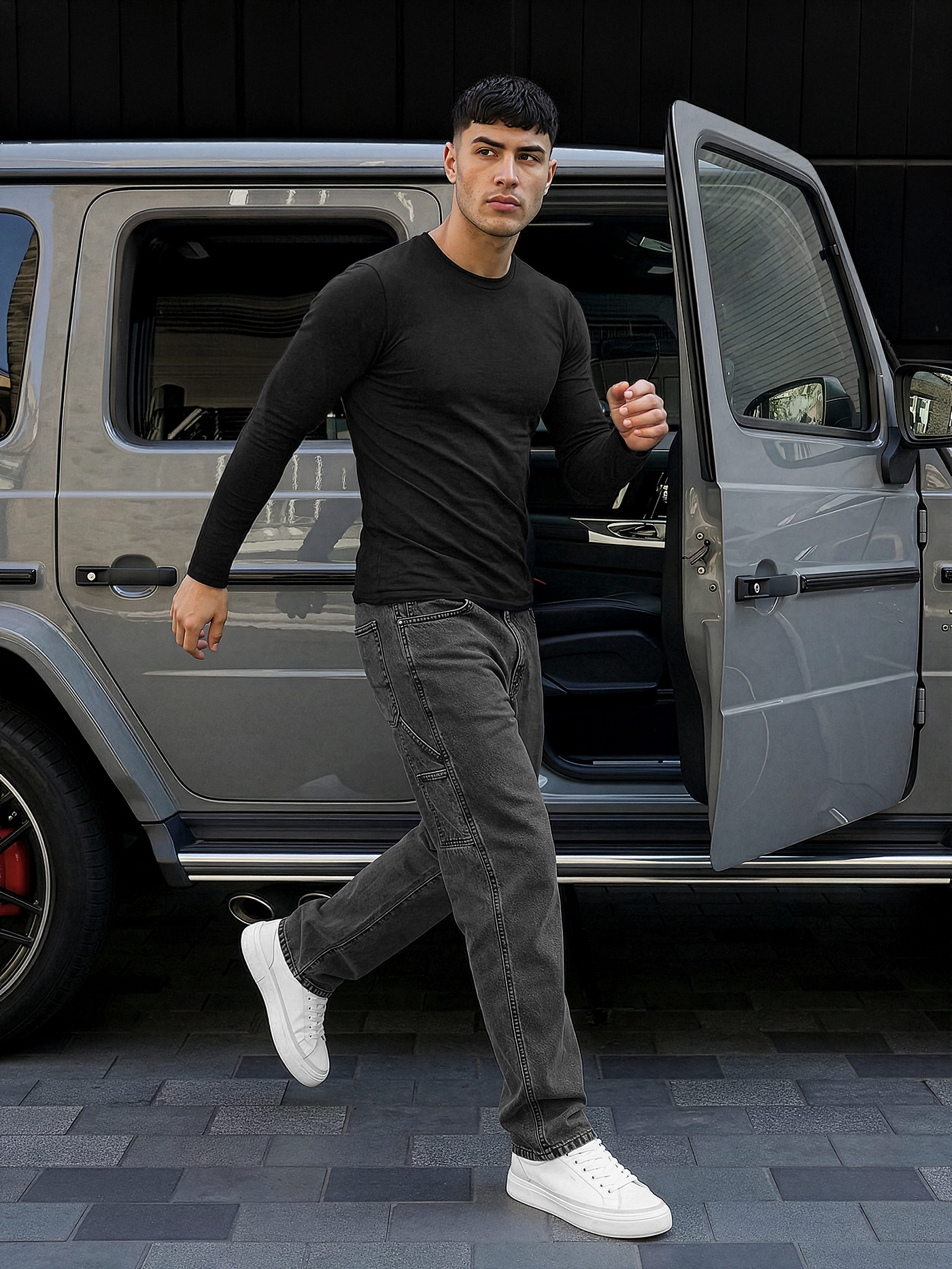 - Vyriški džinsai su plačiomis klešnėmis