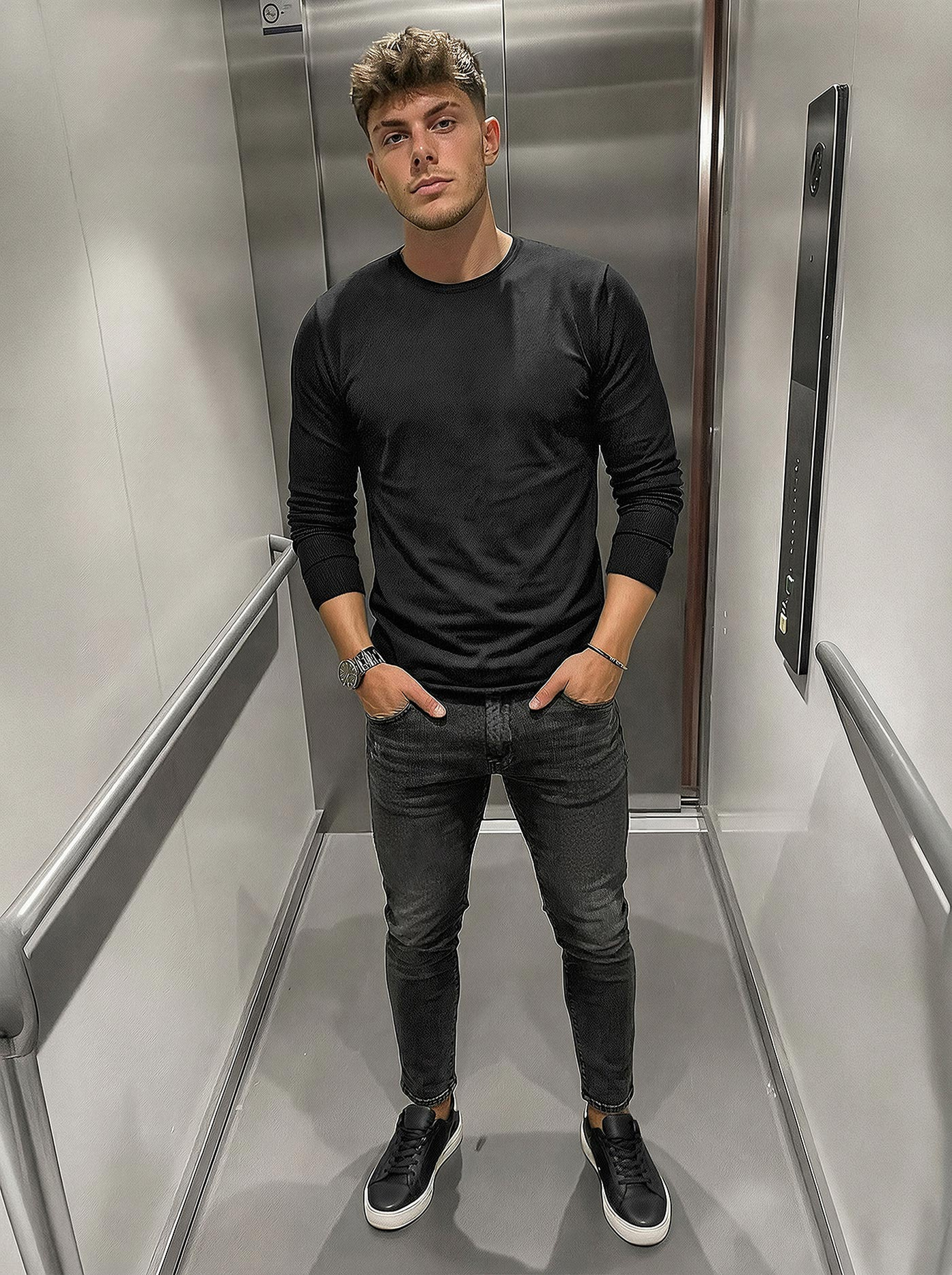 - Medžiaga: 75% medvilnė, 20% poliesteris, 5% elastanas.