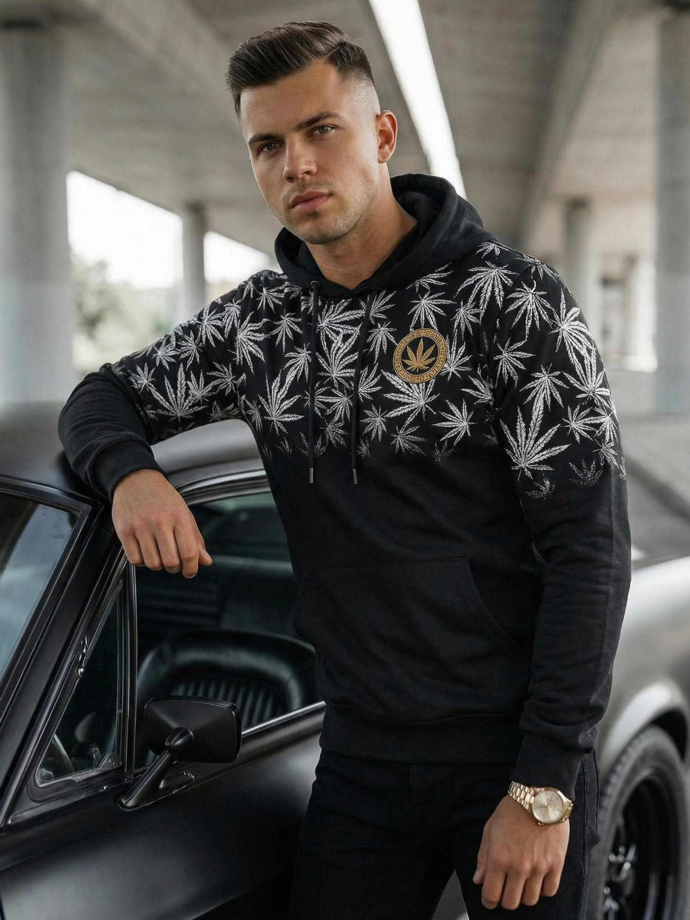 Juodas vyriškas džemperis su gobtuvu OZONEE O/B272Z